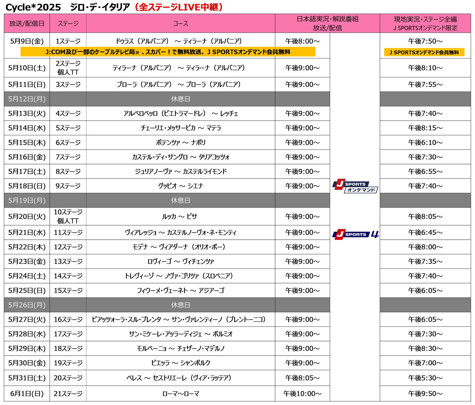 Cycle*2025 ジロ・デ・イタリア放送・配信スケジュール