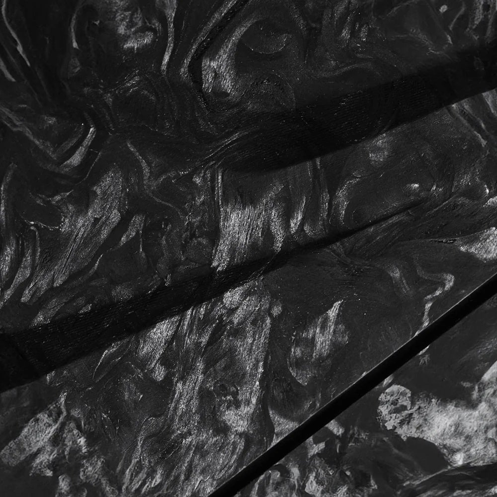 ケース背面の素材に使用したフォージドカーボンは独特のマーブル模様やテクスチャーが特徴で、一つとして同じ模様が存在せず、非常に美しい外観を持っています。同ブランドのアップルウォッチケースを連想させるスポーティなカッティングと中央にセッティングされたタイガー&ライオンのエンブレムは力強さと高級感を演出します。
