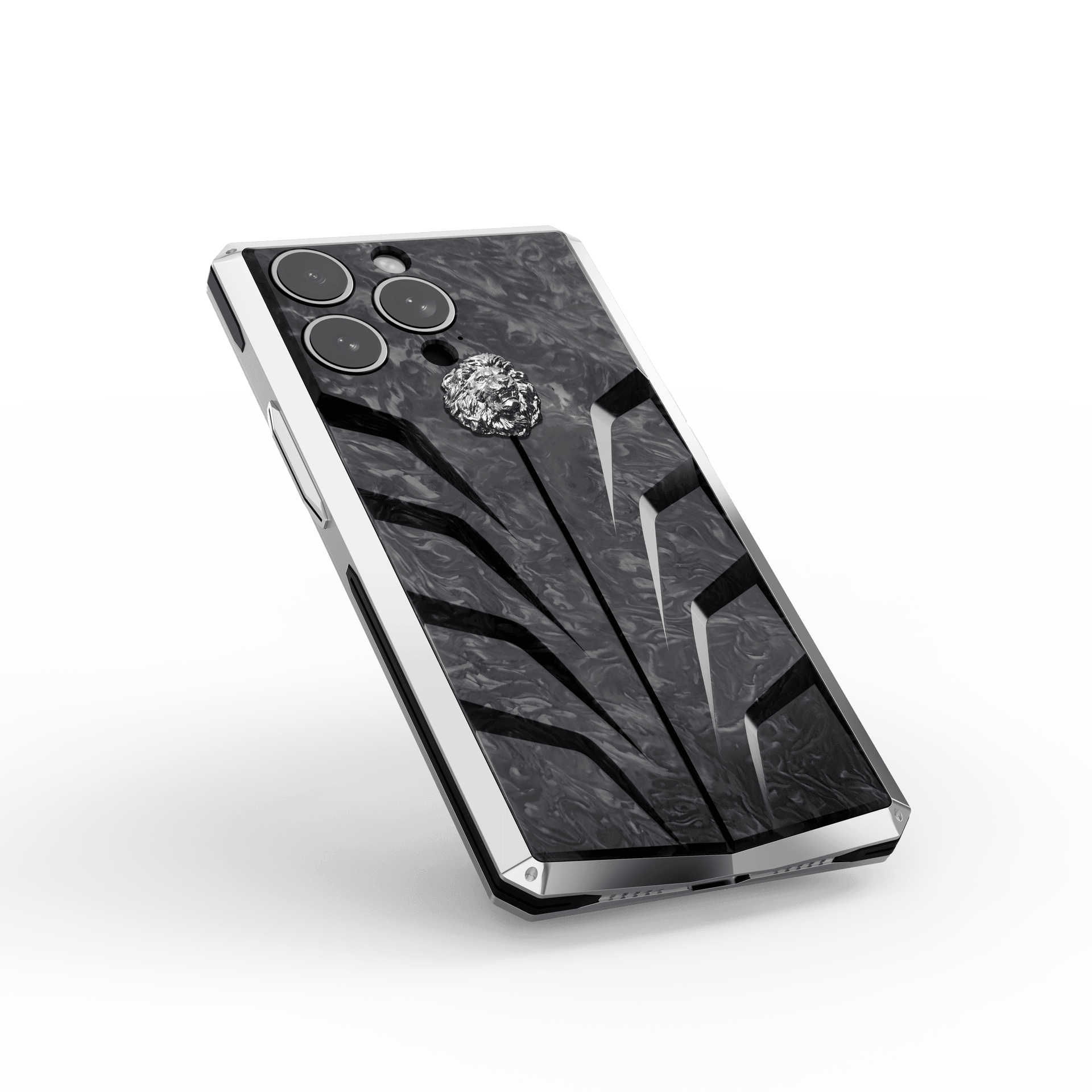 フレームには複数の合金元素の組み合わせにより優れた耐久性と美しい外観を持つ316Lステンレススチール、そして金属と同等またはそれ以上の強度と圧倒的な軽さを併せ持つフォージドカーボンの両者がiPhoneを極めて高い耐久性で保護します。