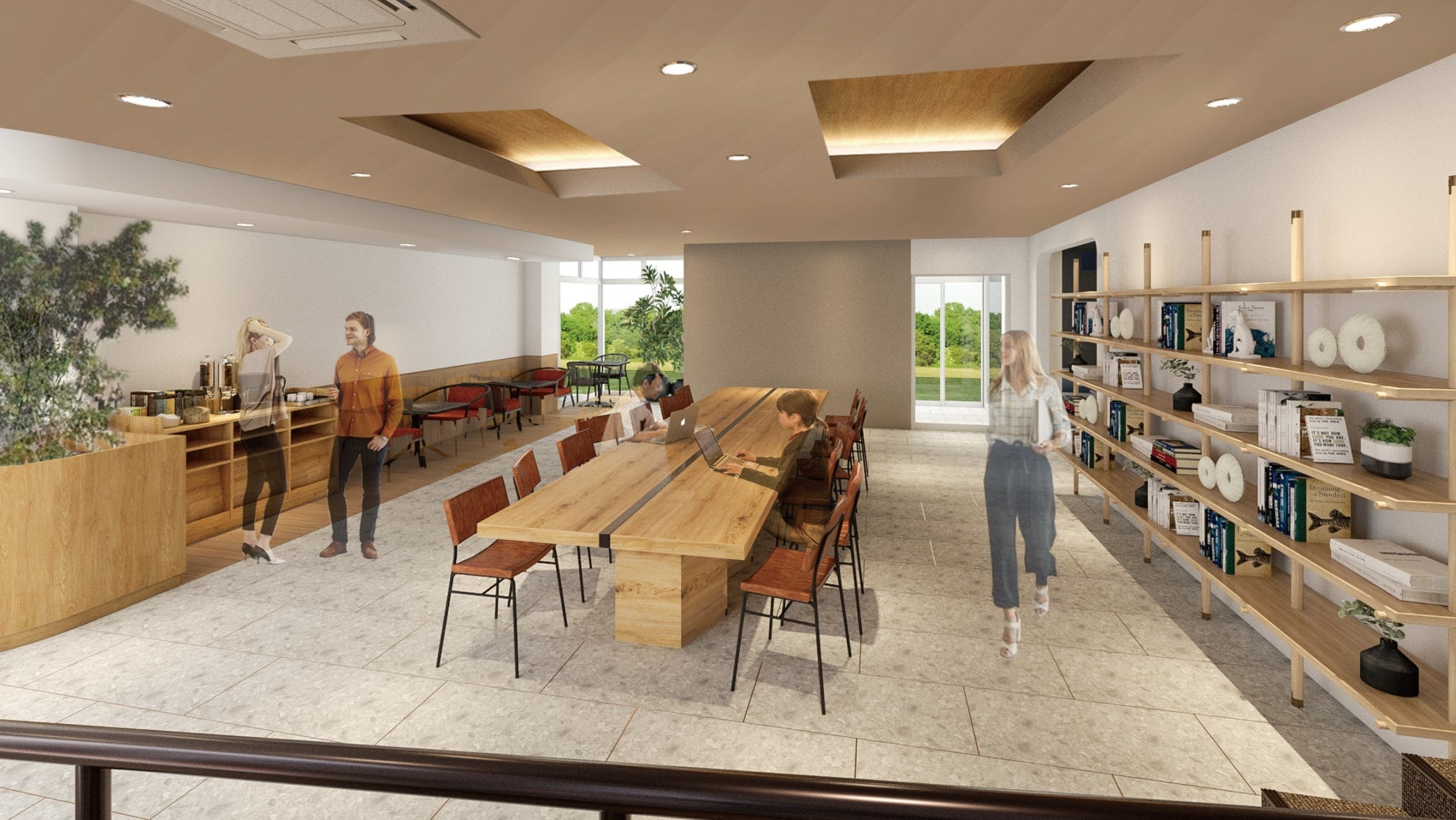 リゾート感あふれリラックスできるコワーキングスペースを整備します。気分に合わせてお選びいただけるシートバリエーションで、多様な働き方と仕事の効率性向上を実現します。