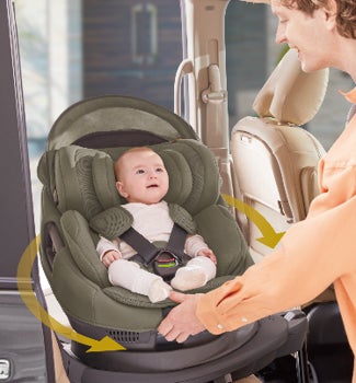 シート部分を回して両側面のグリップを握れば、車に取り付けるベース部分から簡単に取り外せるセパレートタイプ。 赤ちゃんを乗せたままシートを持ち運べる(※3)ので、寒い日や雨の日も焦ることなく、お部屋でゆったりとおでかけの準備ができます。
