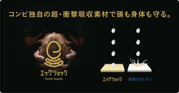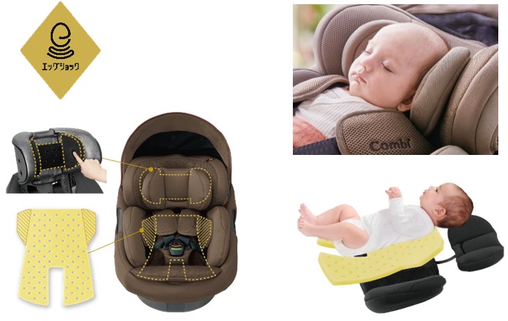 本体頭部だけでなく、背中から足元にかけても、卵を落としても割れないほどの超・衝撃吸収素材「エッグショック」を搭載。ドライブ中の揺れや衝撃から赤ちゃんの全身を守ります。
