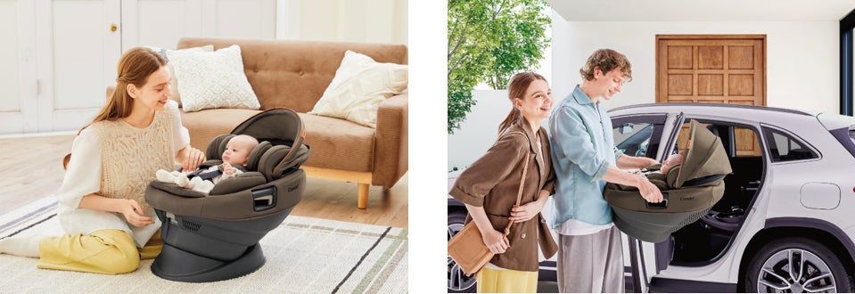 赤ちゃんを乗せたままシートを持ち運べる、セパレート構造のチャイルドシート