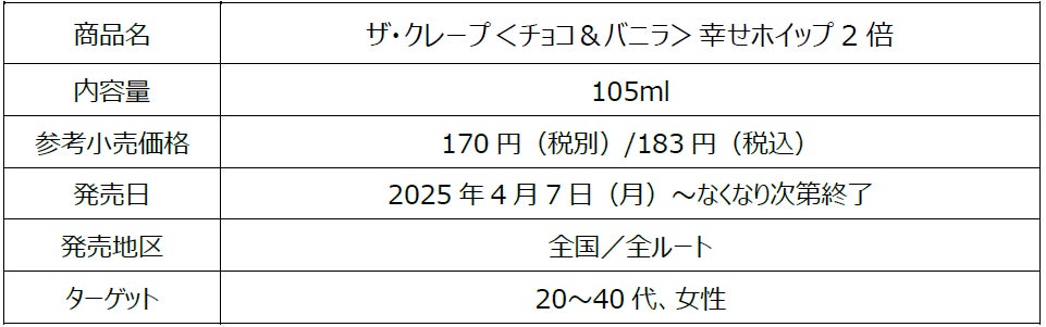 ご好評につき今年も発売! しっぽ部分に入っているホイップクリームの量が2倍になった「ザ・クレープ<チョコ&バニラ>幸せホイップ2倍」4月7日(月)より期間限定発売