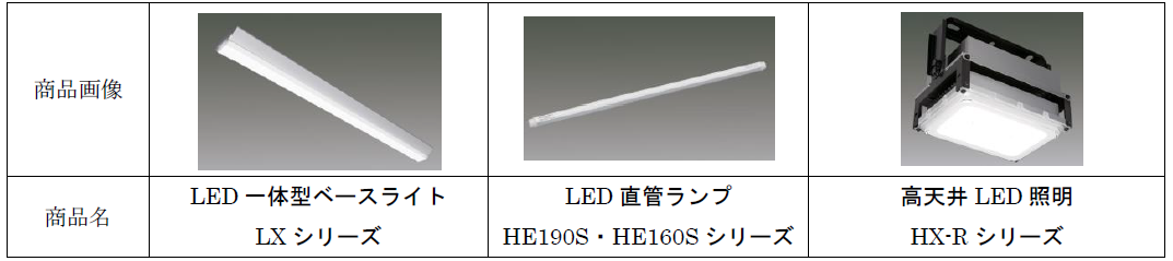 ベース照明、直管ランプ、ダウンライト、高天井照明、照明制御システムなど