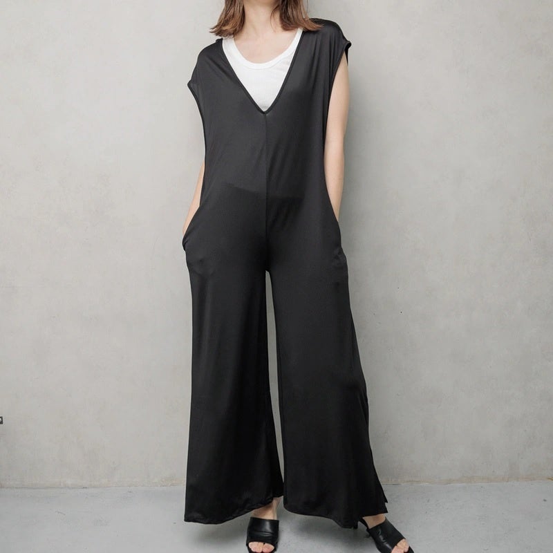 前後2WAYのワイドシルエットのオールインワン。UPF50+・接触冷感・吸水速乾の素材に左右のポケット付きと機能性も充実。