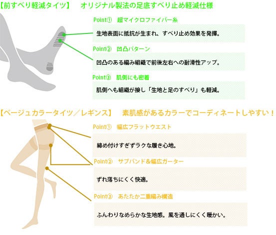 ~“前すべり軽減タイツ”、“ベージュカラータイツ・レギンス”、“つま先カバー”を新発売~
