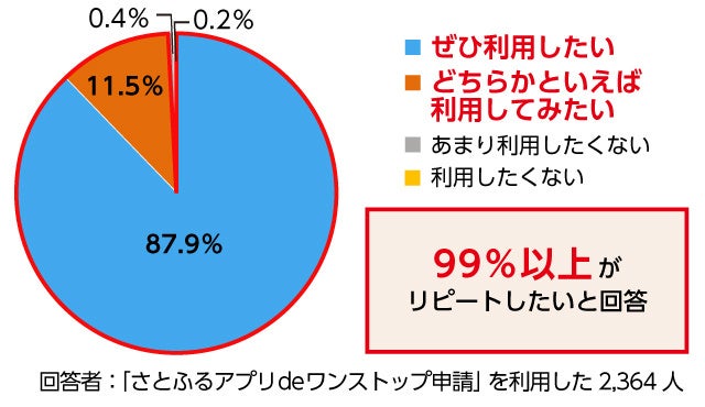 【ふるさと納税に関するアンケート調査】ワンストップ特例制度の申請がオンラインで完結する「さとふるアプリdeワンストップ申請」99%以上の利用者が「リピートしたい」と回答