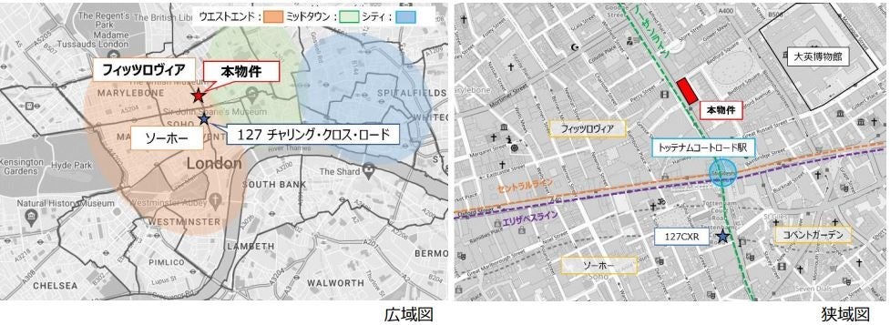 本プロジェクトはロンドン中心部のウエストエンド、フィッツロヴィアエリアのトッテナム・コート・ロード駅付近に位置します。周辺には、多くのオフィスワーカーや観光客が集まり、物販店舗や飲食店などの商業施設が集積します。また、2022年にロンドン中心部の東西を結ぶ地下鉄新線・新駅が開業したことで交通利便性が向上しているほか、本物件周辺を含む駅周辺では再開発が続々と行われるなど、ロンドン屈指のオフィスエリアとして発展しています。