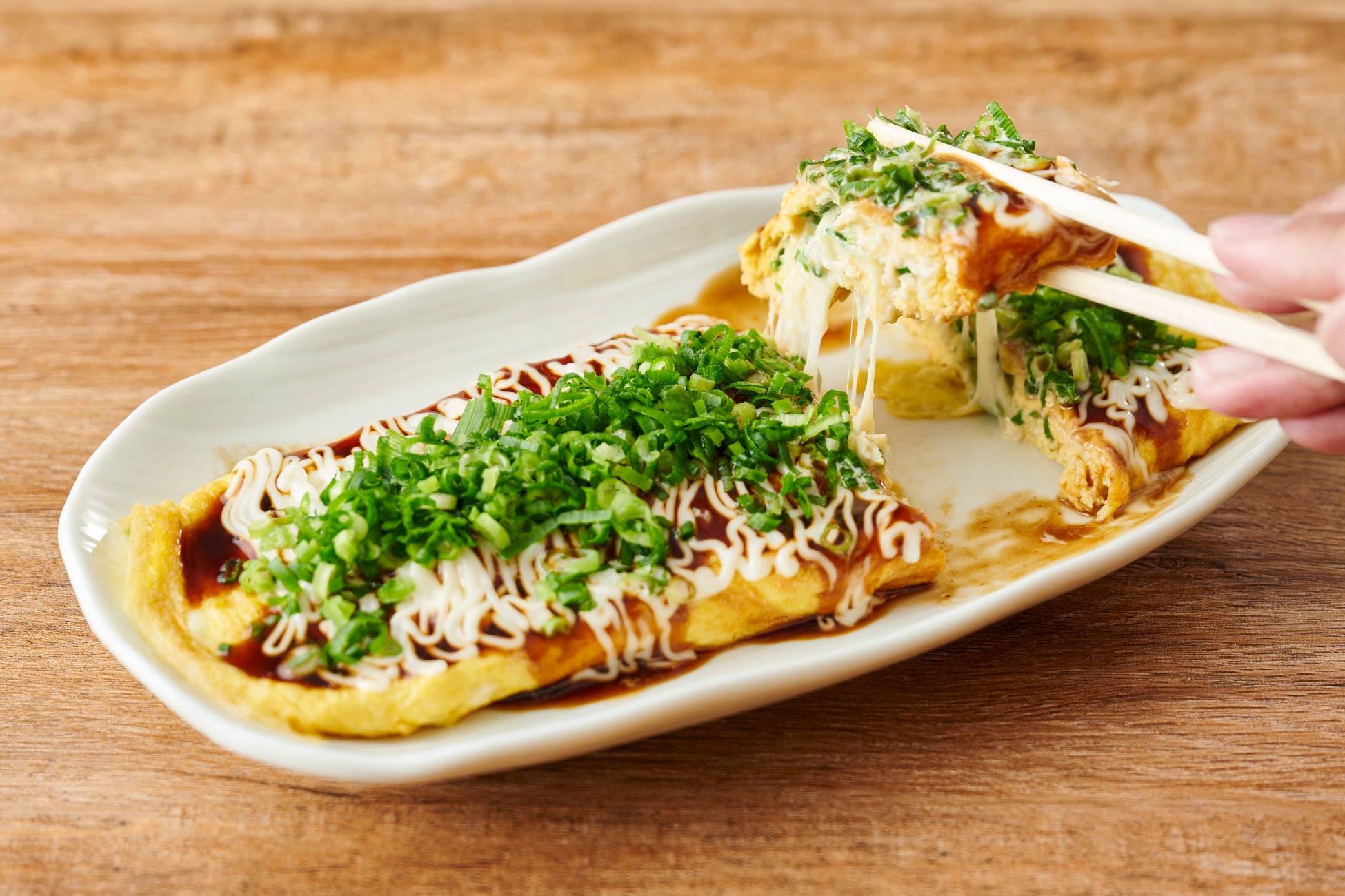 たまごの中も外も葱まみれ!チーズとマヨネーズがマッチした一品です。