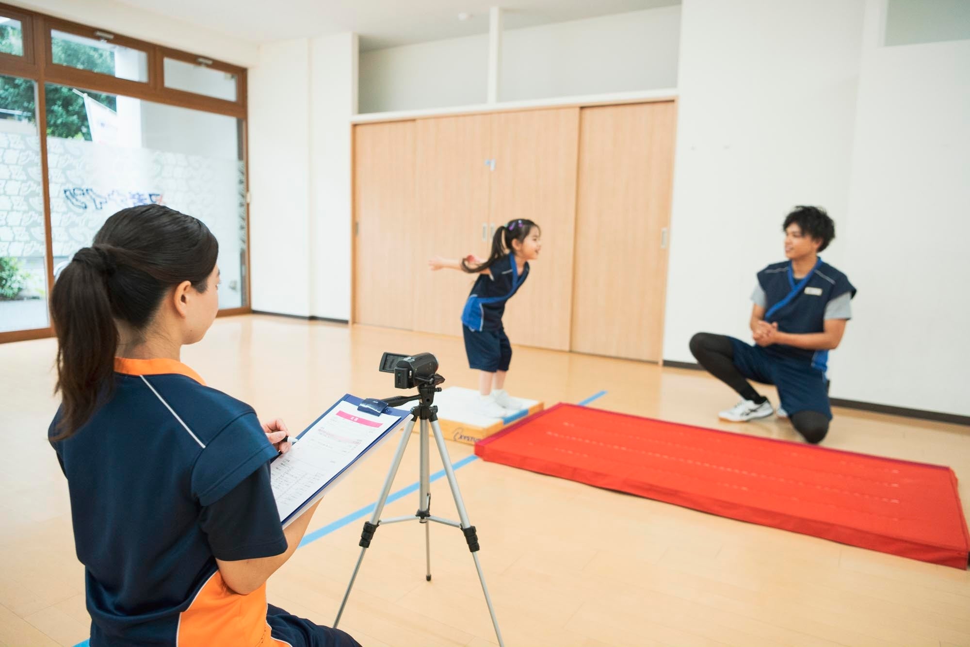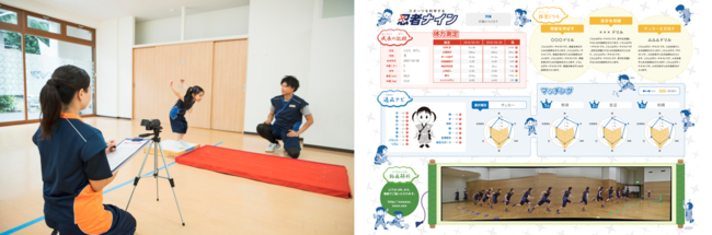幼少期に必要な「神経系統の発達」のための効果的なプログラムとして、すべてのスポーツの土台となる9つの基本動作(走る・跳ぶ・投げる・打つ・捕る・蹴る・組む・バランス・リズム)を身につけるための、スポーツ科学の研究成果を基に考案された300の運動プログラム「忍者300」が特長です。また、異学年合同プログラム「忍者バトル」を通じてリーダーシップや年下の子を思いやる気持ち、チームで考える力など社会性や協調性を育て、脳科学を基にした30のゲームにより自分で考える力を育てます。そのほか、動作分析シミュレーションシステム「スポーツ適性ナビ」を用い、お子さまの運動能力を総合的に判断し、どんな競技に向いているかを診断します。