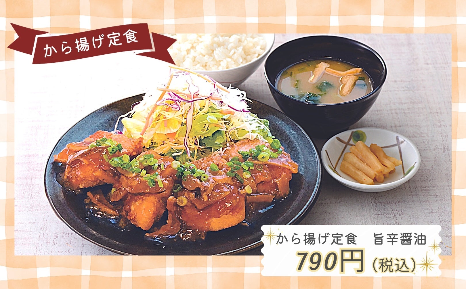 どれも『安い!美味しい!』が詰まったラインナップにてご提供している日替わり定食・プレミアム日替わり定食・から揚げ定食をご注文の方が対象となります。