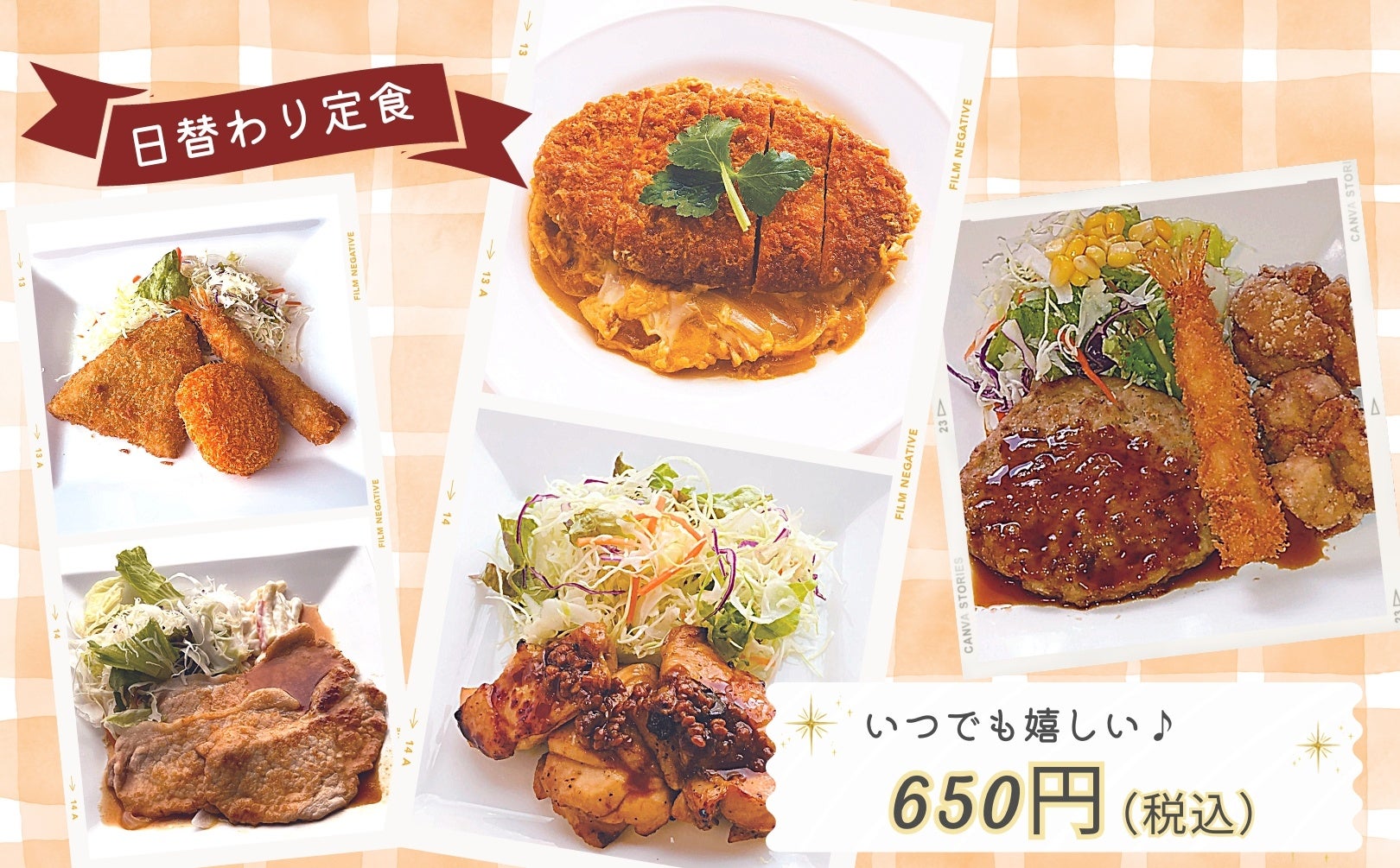お財布に優しい!いつでも嬉しい税込650円の『日替わり定食』は、安くてボリューム満点!日替わりで毎日飽きることなくお楽しみいただけます!