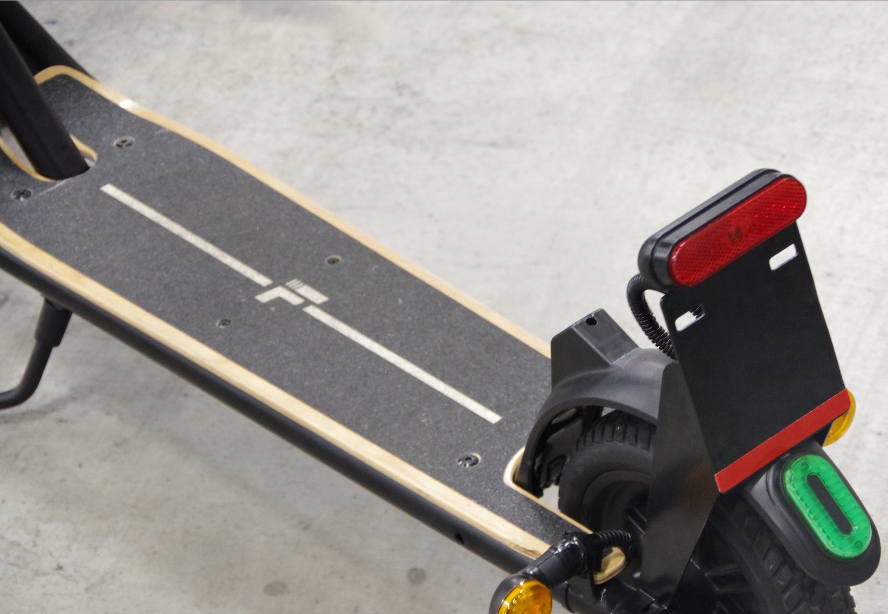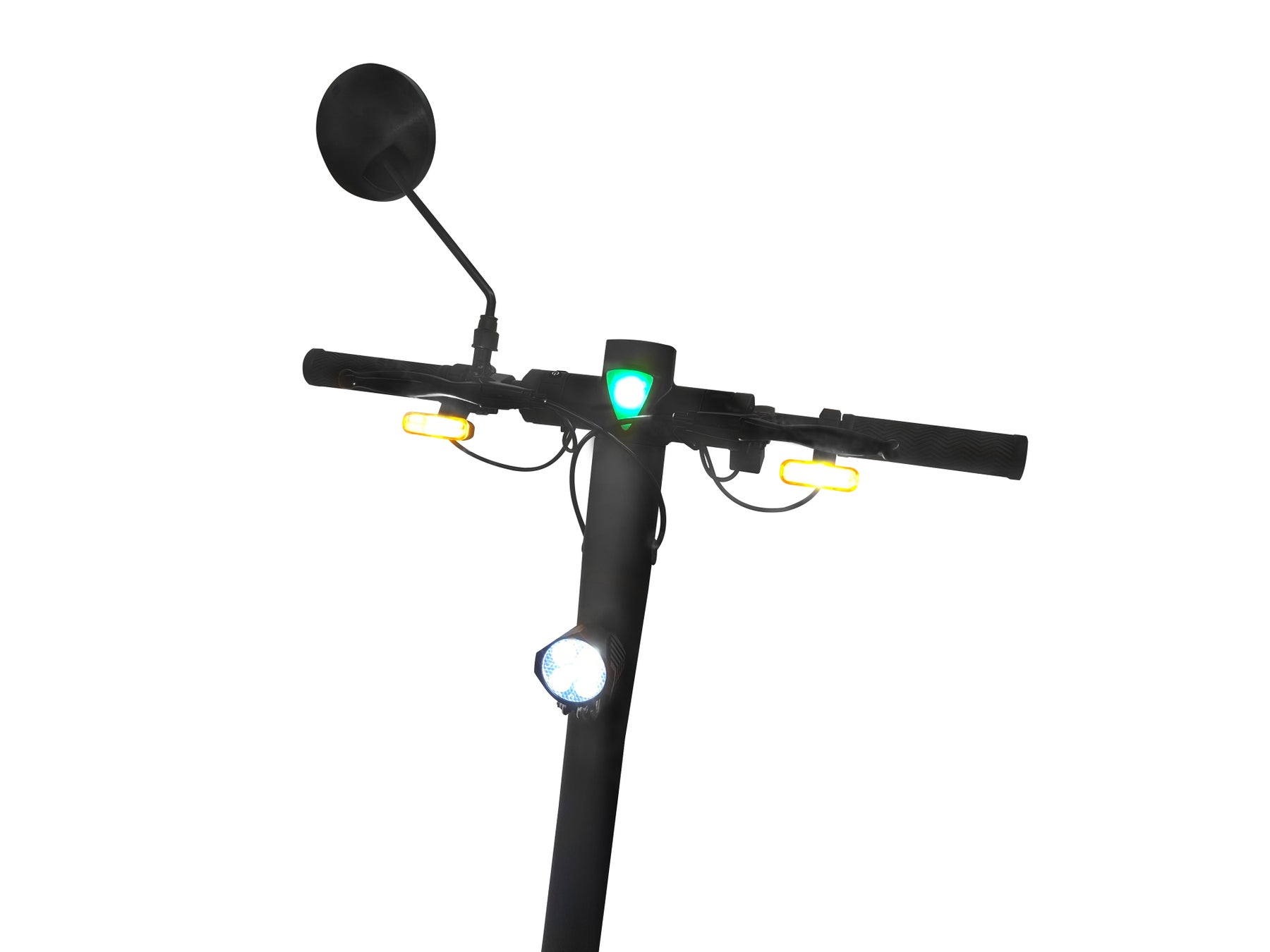 MEISTER.Fの「特定小型」区分の電動キックボードは、より安全にお乗りいただく為に3つの保安部品を強化しております。