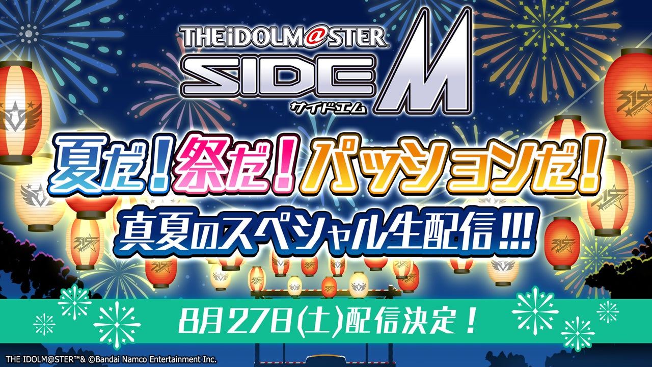 「アイドルマスター SideM 夏だ!祭だ!パッションだ!真夏のスペシャル生配信!!!」を配信予定です!