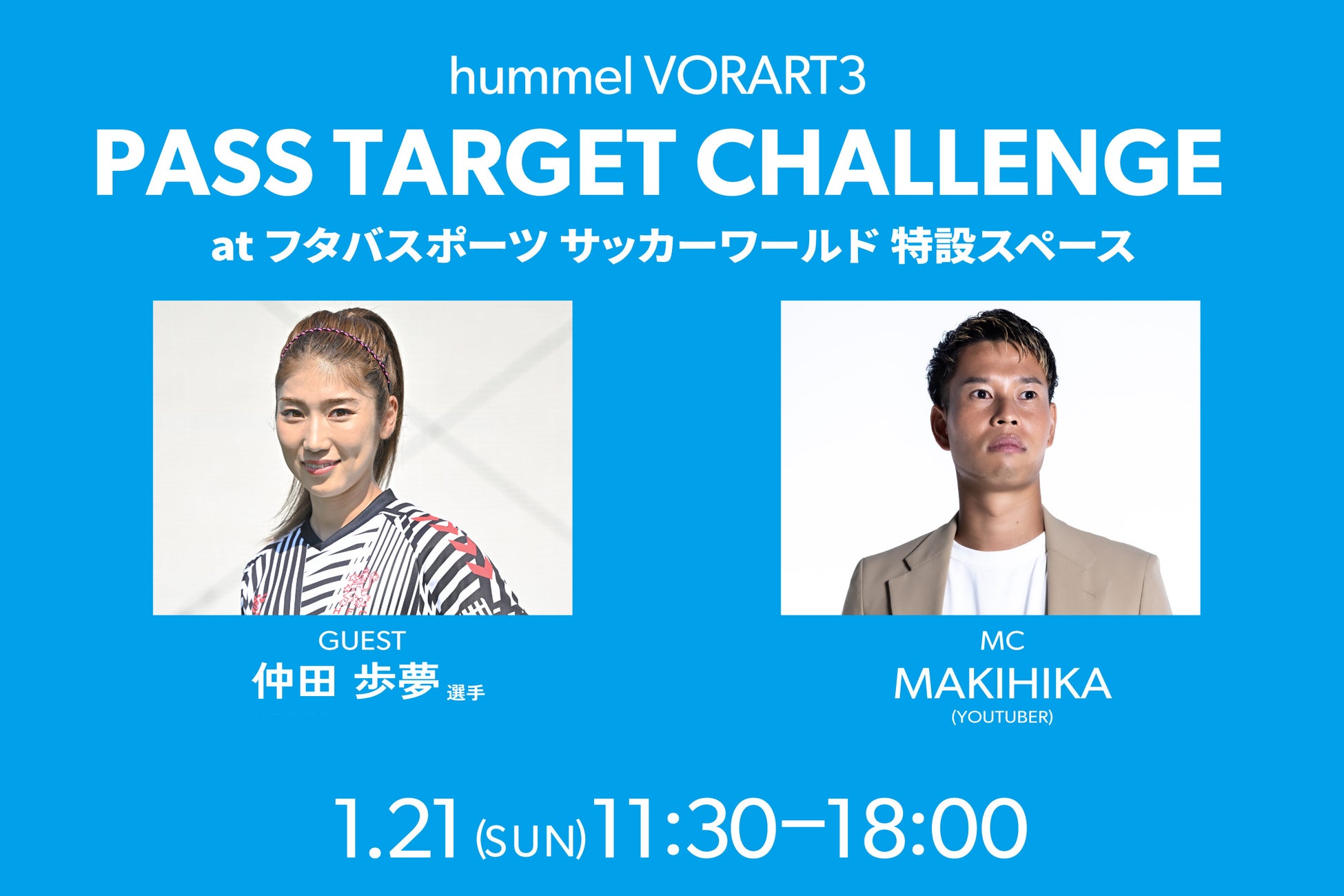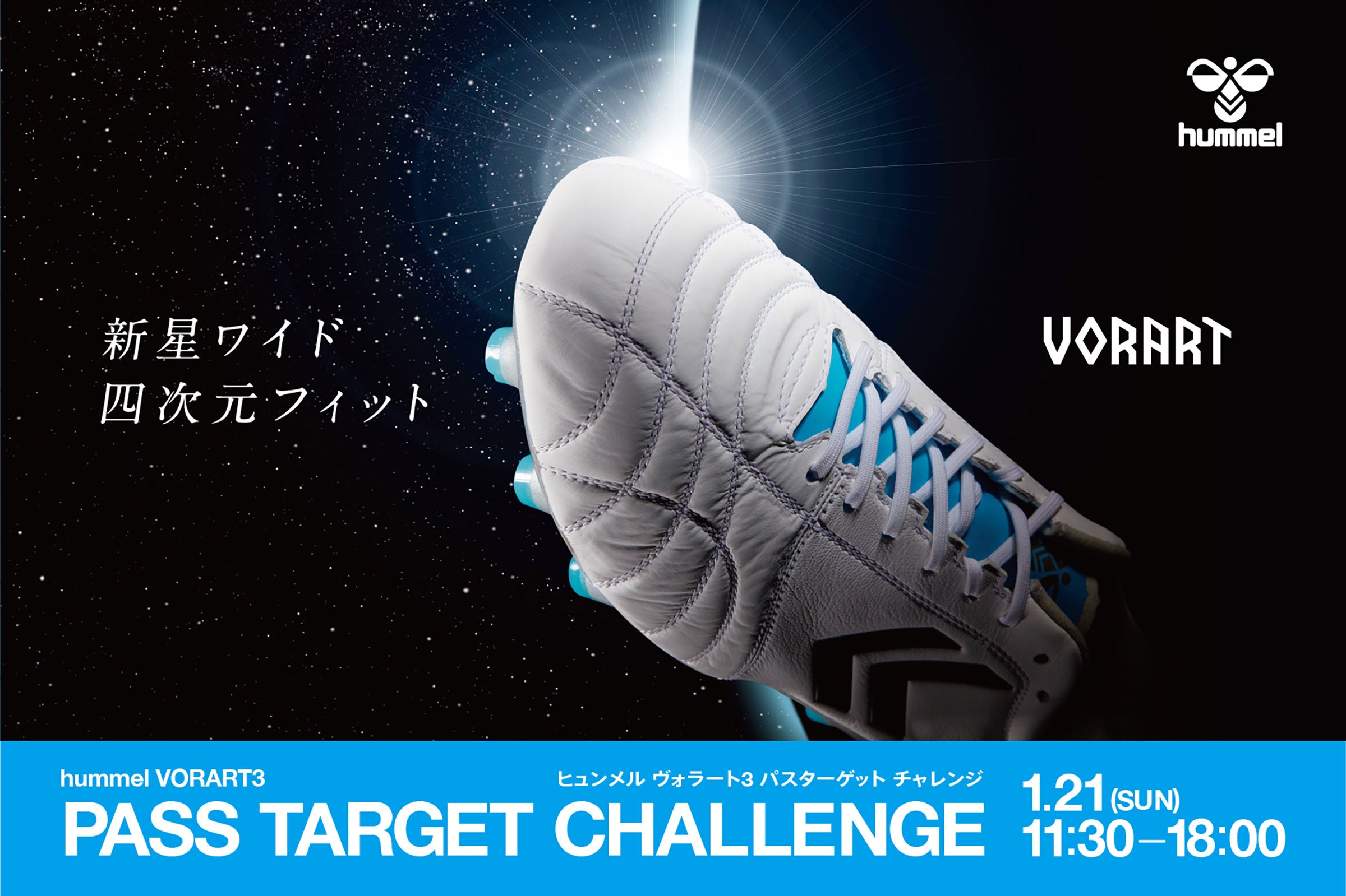 ヒュンメルの新作スパイクVORART3(ヴォラート3)シリーズの発売を記念し、1月21日(日)にフタバサッカーワールドで「ヒュンメルVORART3パスターゲットチャレンジ」を開催。