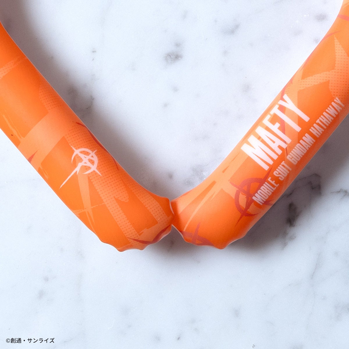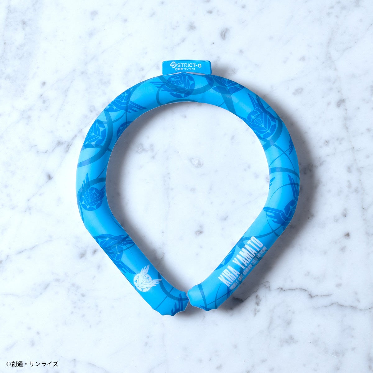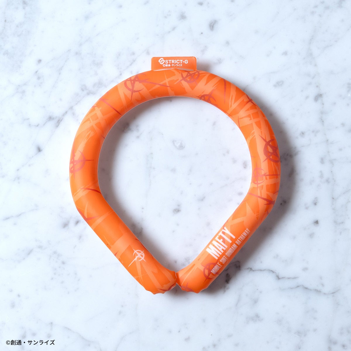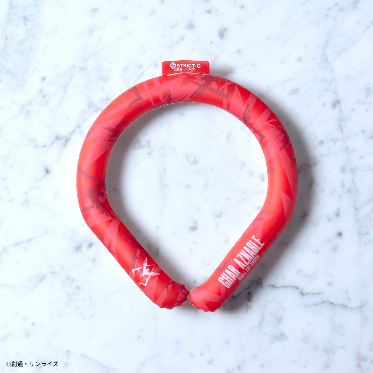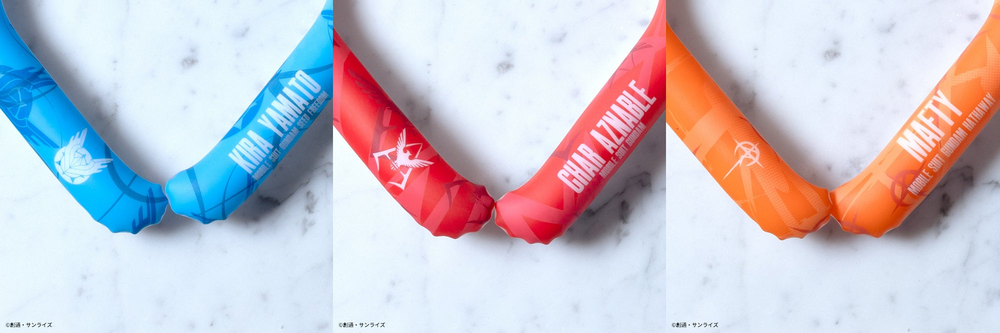 首に巻くリングタイプの商品で、約26〜27度以下で自然凍結し何度も繰り返しお使いいただけるクールアイテムです。『機動戦士ガンダムSEED FREEDOM』よりキラ・ヤマトをイメージした清涼感のあるブルーの総柄にワンポイントで世界平和機構コンパスのマークと文字が入ったキラ・ヤマトモデル。『機動戦士ガンダム』よりシャアをイメージしたレッドの総柄にワンポイントでシャアマークと文字が目立つシャアモデル。『機動戦士ガンダム 閃光のハサウェイ』より象徴的なオレンジが際立つ総柄にMAFTYロゴと文字が入ったMAFTYモデルの3種を展開致します。夏のレジャーやスポーツ、ビジネスシーンでも活躍するアイテムです。全てLサイズ(約39㎝)の展開です。