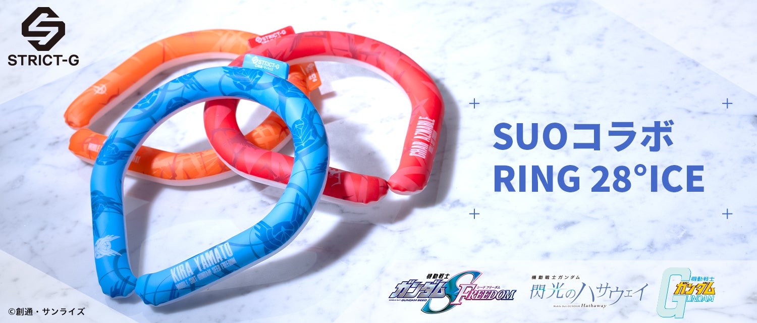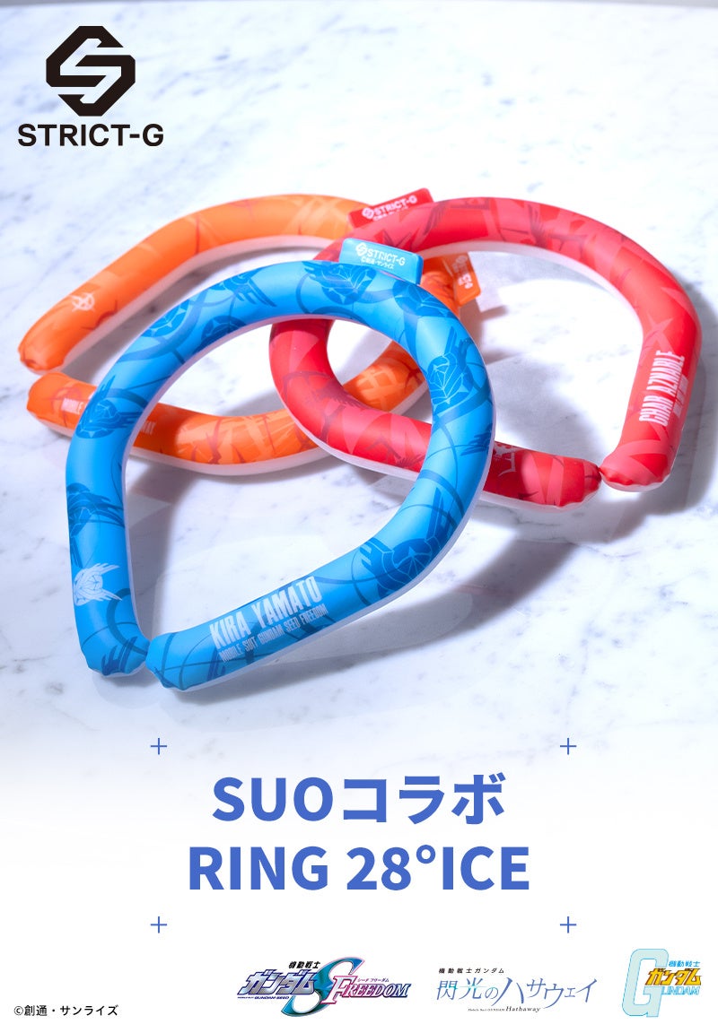 STRICT-G初となる「SUO」とのコラボ! 「ガンダムシリーズ」より夏のクールアイテムRING 28°ICEを展開します