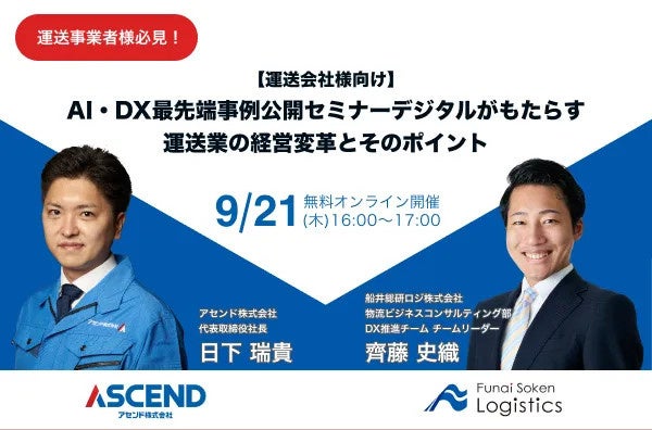 【講演レポート】デジタルがもたらす運送業の経営変革とポイントを解説した「AI・DX最先端事例公開セミナー (アセンド株式会社様 主催)」にて、船井総研ロジの経営コンサルタントが講演しました