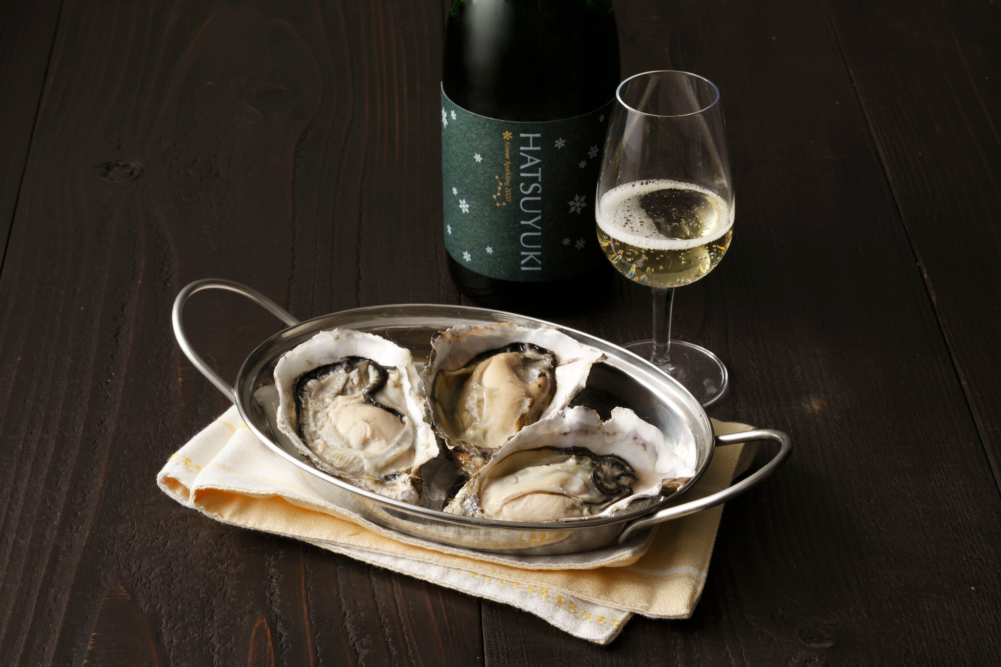 写真上)殻付き蒸し牡蠣(1皿、3個)1,200円