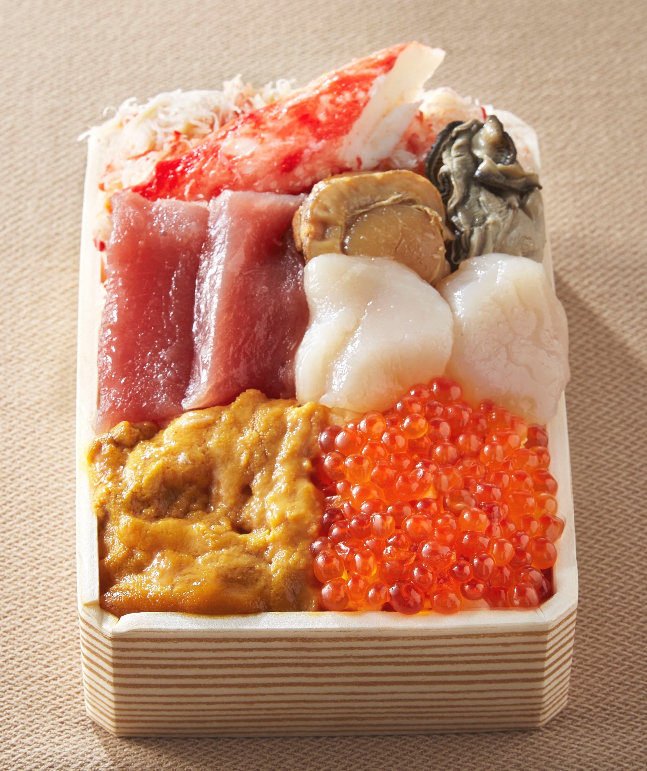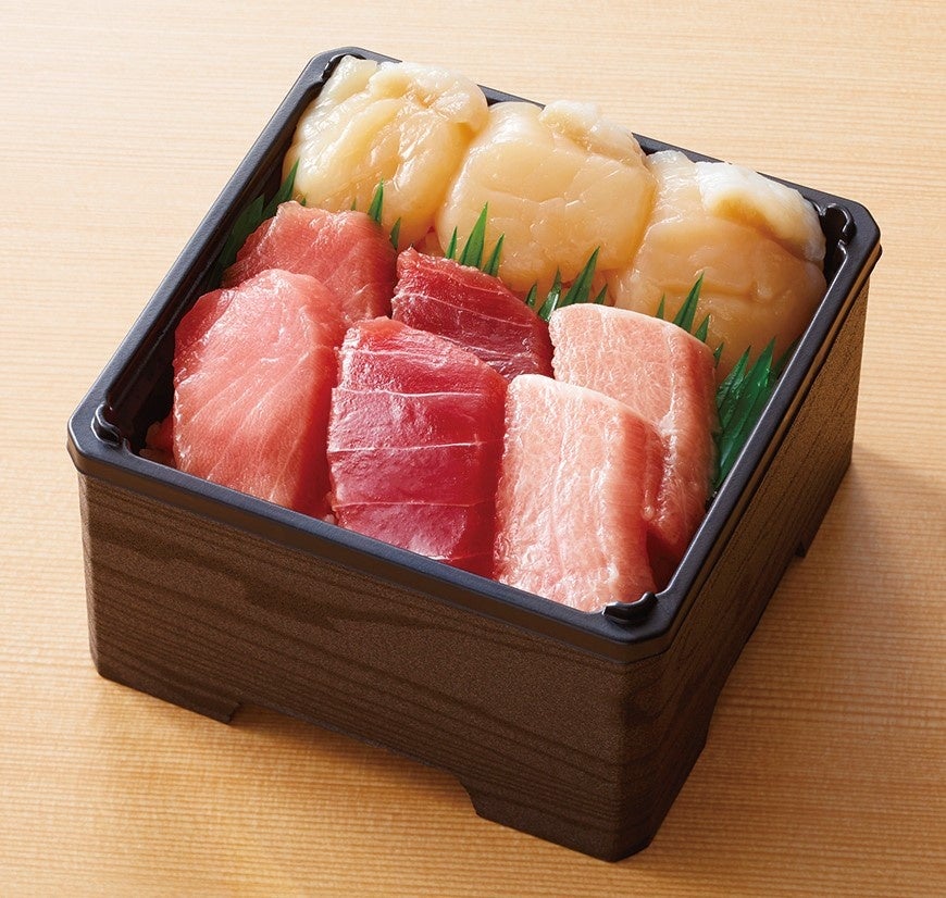 戸井産本鮪(大トロ・中トロ・赤身)と道産ホタテ丼(1折) 1,890円