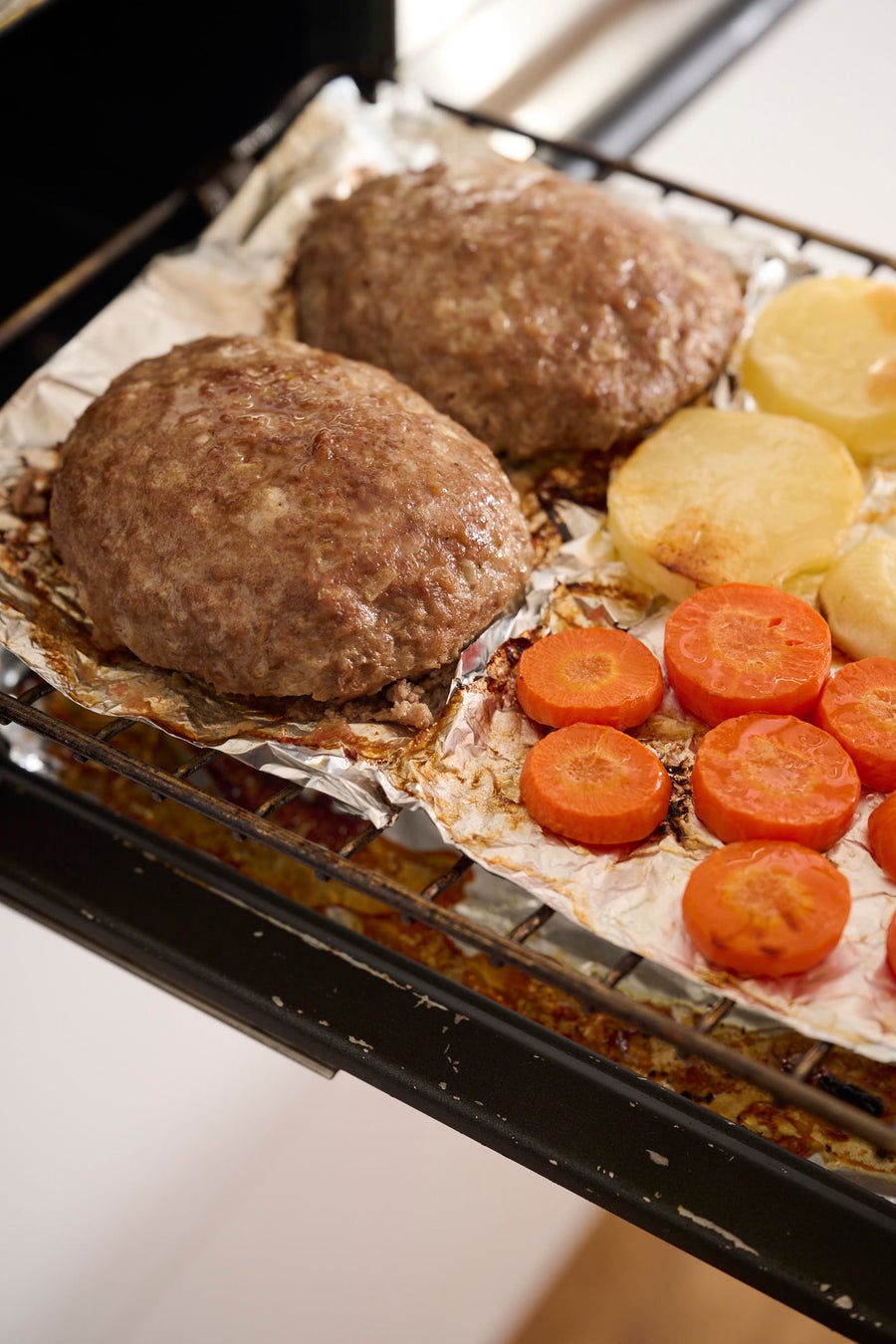 でも実は、フライパンやオーブンで調理する料理をグリルに置き換えると、驚くほど簡単においしく焼けるんです。わたし自身、普段からハンバーグもグリルで焼くのが定番!ハンバーグは調理の過程で肉汁が流れ出ず、旨味を凝縮してくれます。