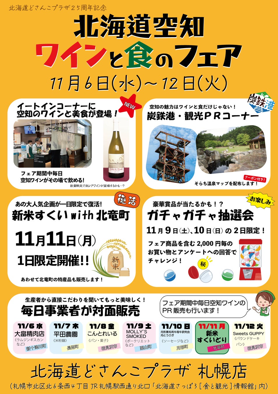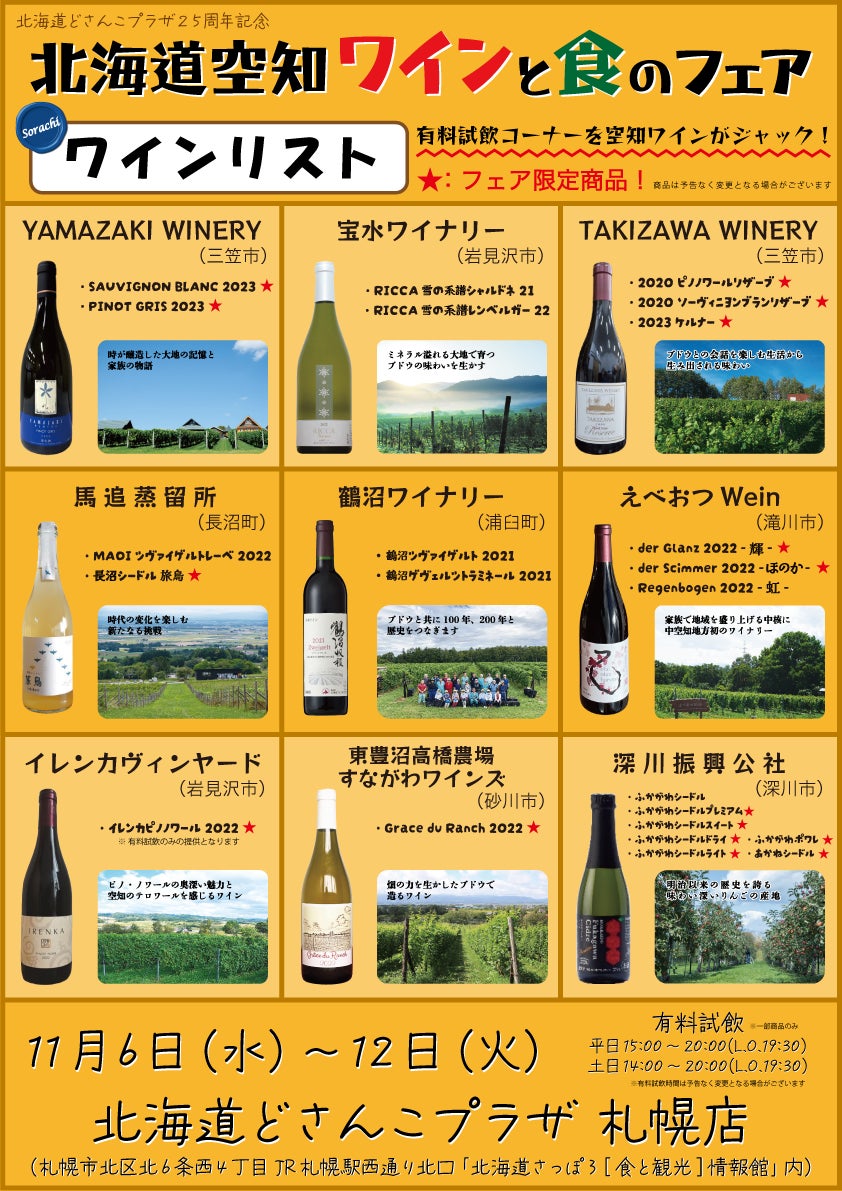 【11/6(水)~12(火)】北海道どさんこプラザ札幌店で「北海道空知ワインと食のフェア」を開催します