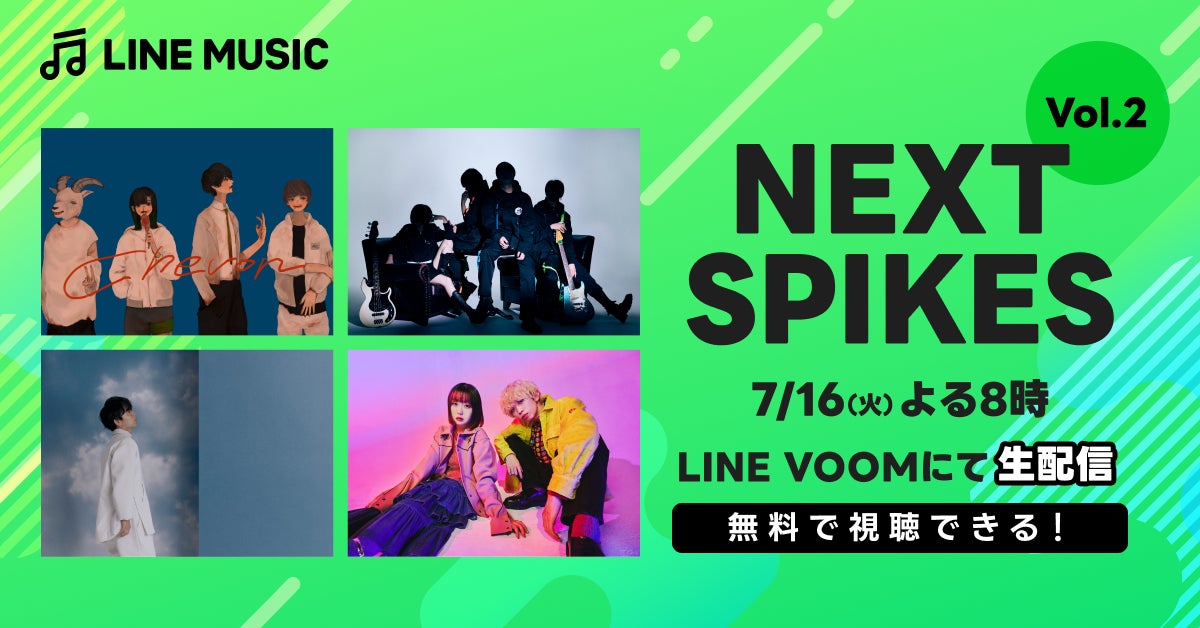 LINE MUSICの次世代アーティストパワープッシュ企画「NEXT SPIKES Vol.2」選出アーティストによるスペシャル生配信決定!7月16日(火)20時よりLINE VOOMにてライブ配信