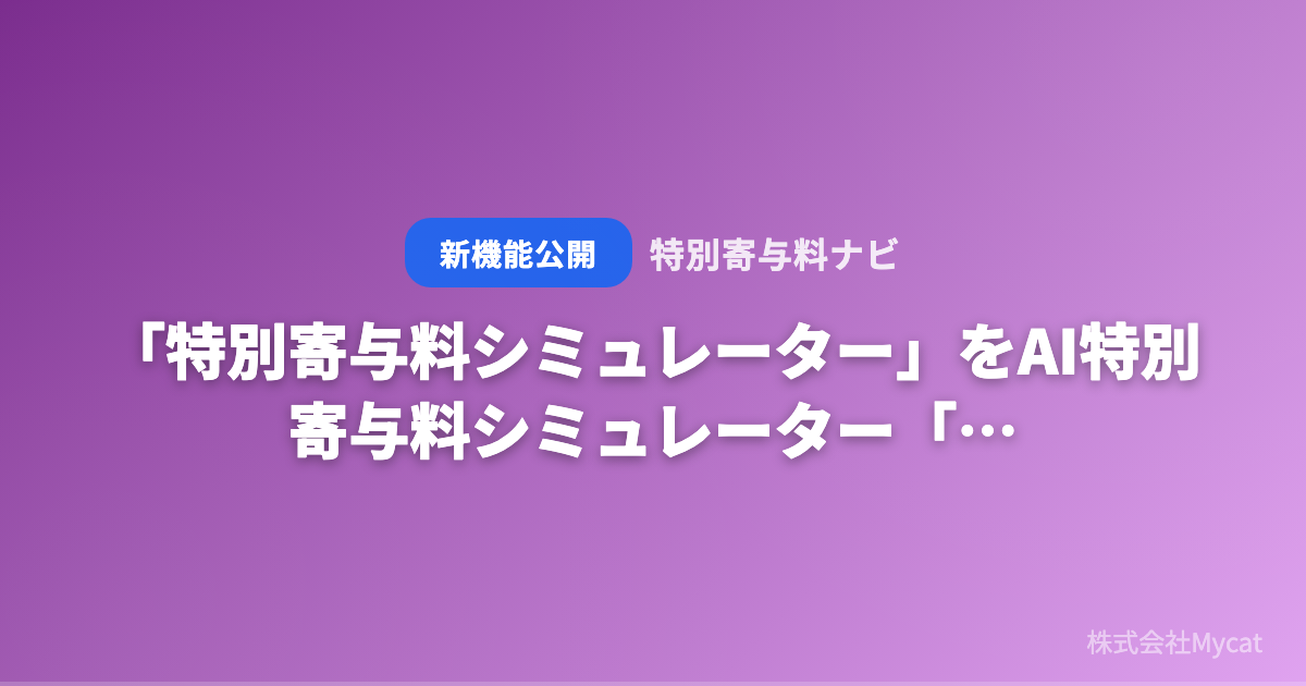 株式会社Mycat(本社:東京都目黒区)は、AI特別寄与料シミュレーター「特別寄与料ナビ」(https://tokubetu.xyz)において、特別寄与料シミュレーター(https://tokubetu.xyz/tools/contribution-counter)を新たに公開しました。