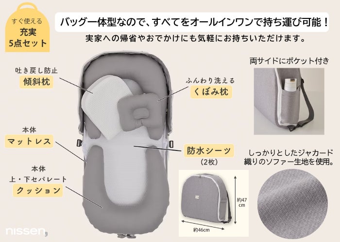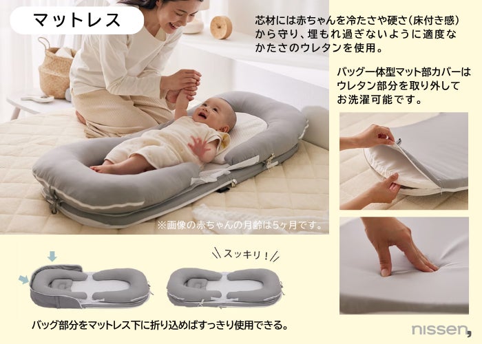 ”はじめての夏旅を”安心に。赤ちゃんにも専用の“やさしい寝場所”を。ニッセンが、そんな想いで開発した4WAYの持ち運び方ができるポータブルなベッドインベッドを楽天やニッセン本店で発売。