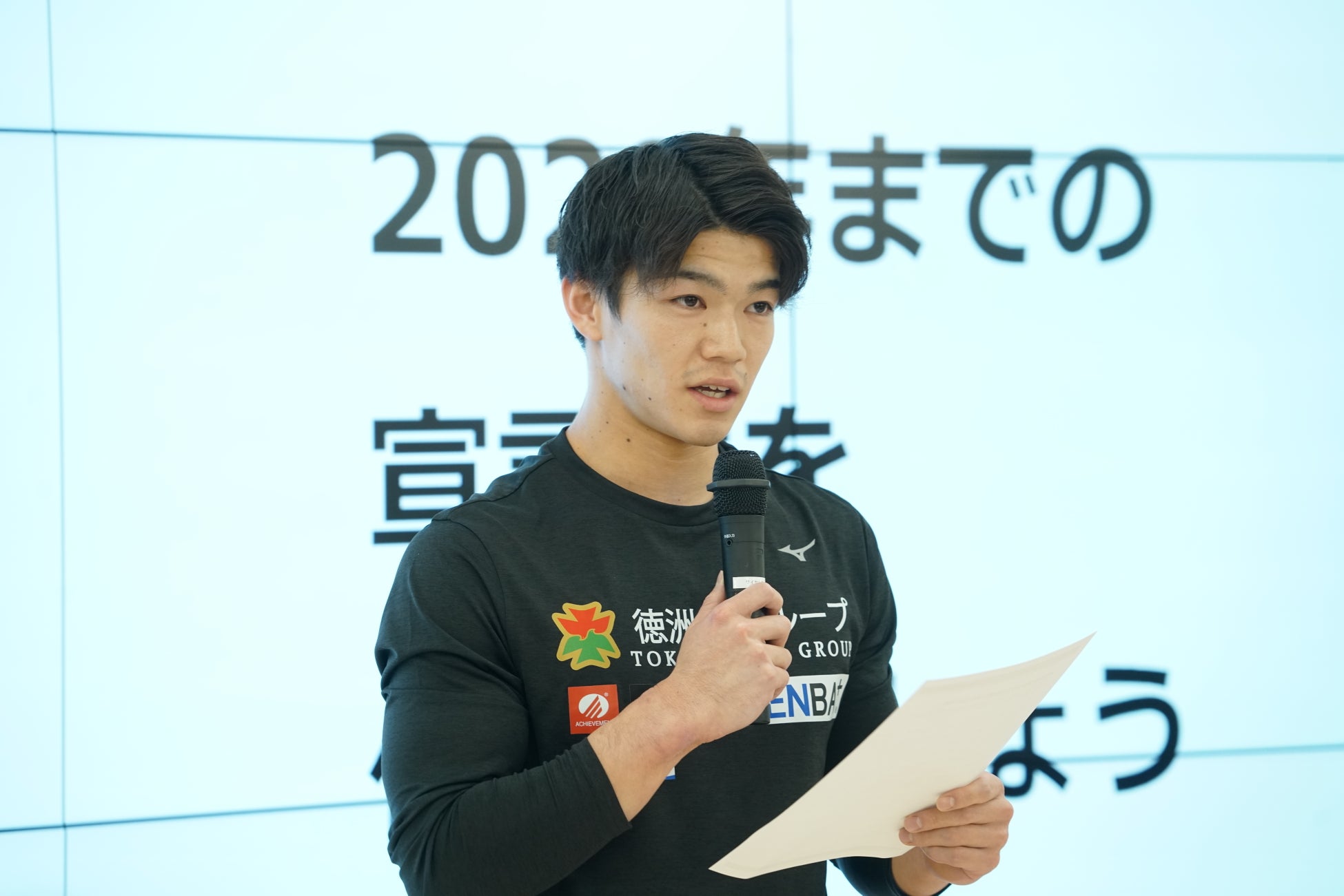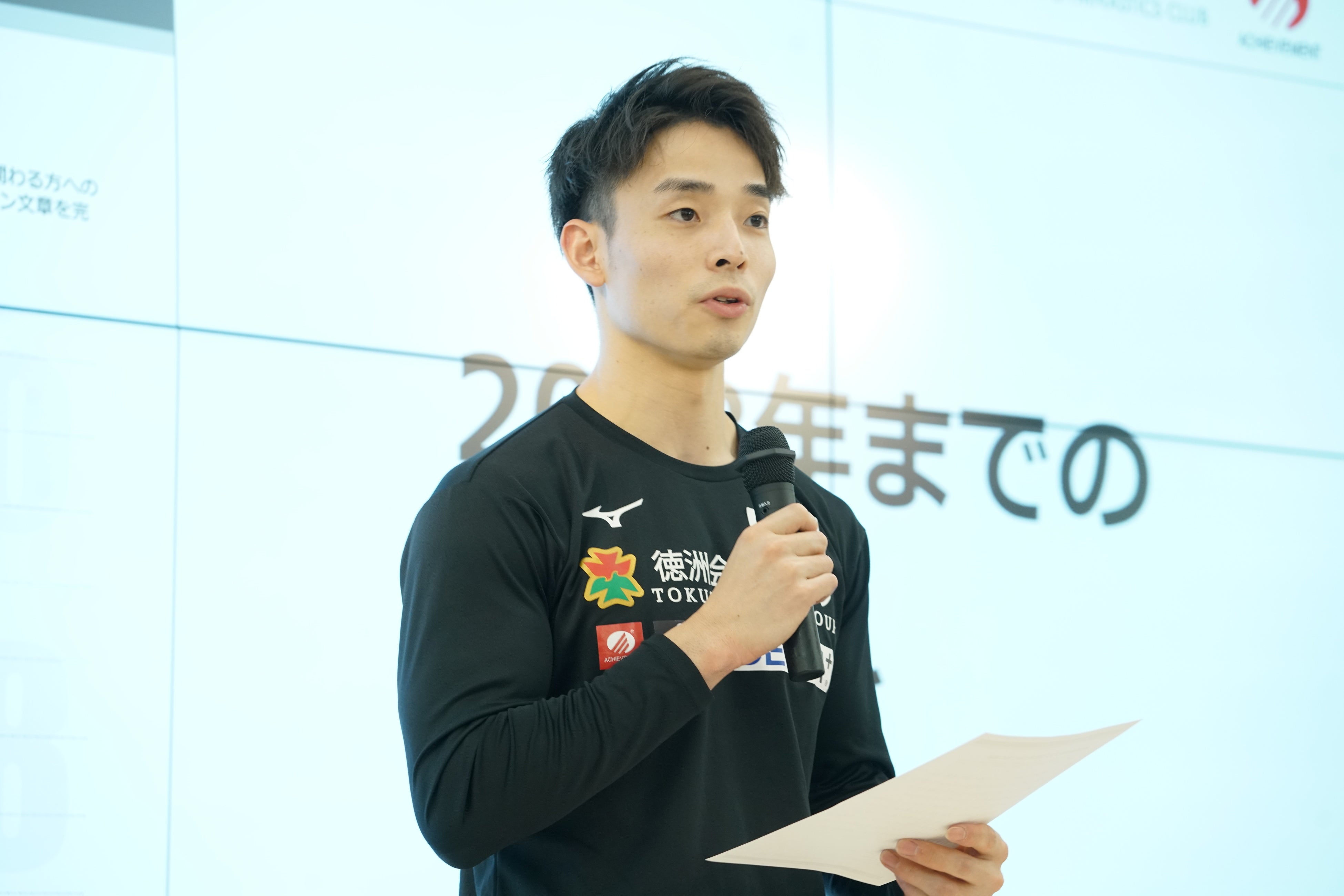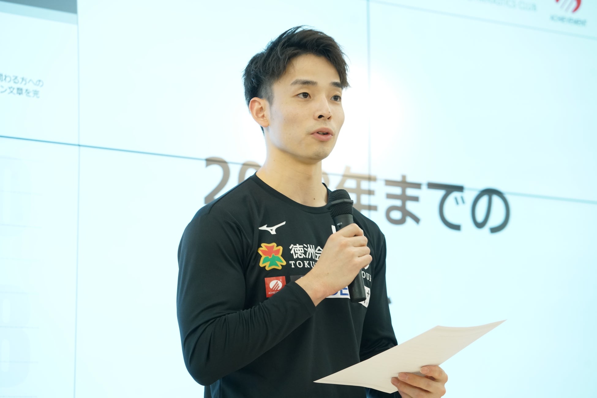 「2028年ロス五輪で団体二連覇、あん馬金メダルを取っています。団体の代表メンバーは全員が徳洲会体操クラブです。誇りと自信をもち、成果で活躍することで日本の体操界そして、スポーツ界を引っ張る存在になります。そのために感謝を忘れず人間力を磨き続けます。」