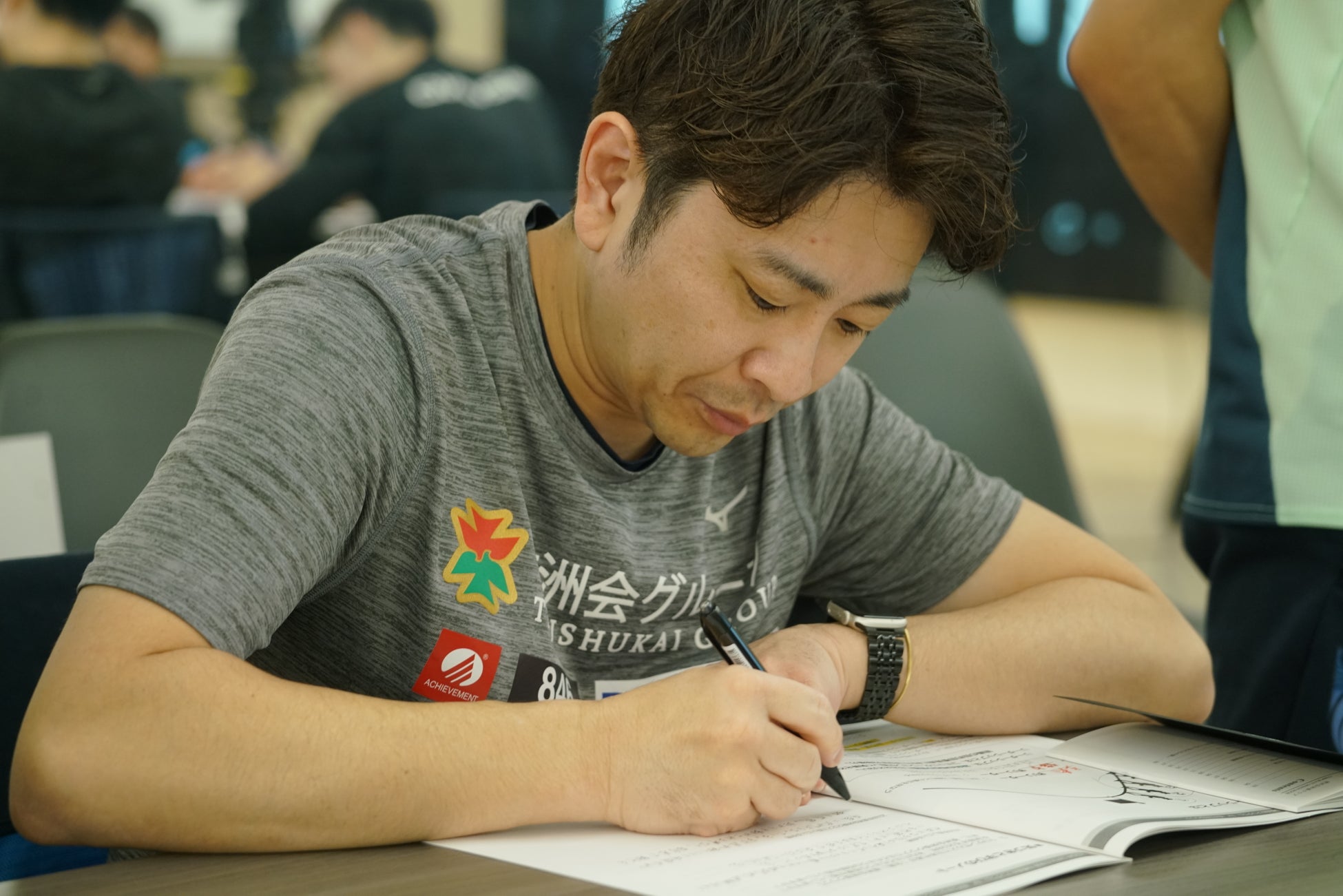 研修で導入されたのは、スポーツ界では異例となる企業経営で活用される「コーポレートデザインブック」です。「勝ち続ける考え方」や「クラブが大切にしたい価値観」「挨拶や身だしなみ」までを米田功監督が言語化し1冊のブックに集約。このブックを全メンバーで読み解きを行い、最後にはロス五輪、そしてその先の未来を見据え、決意のプレゼンテーションを行いました。