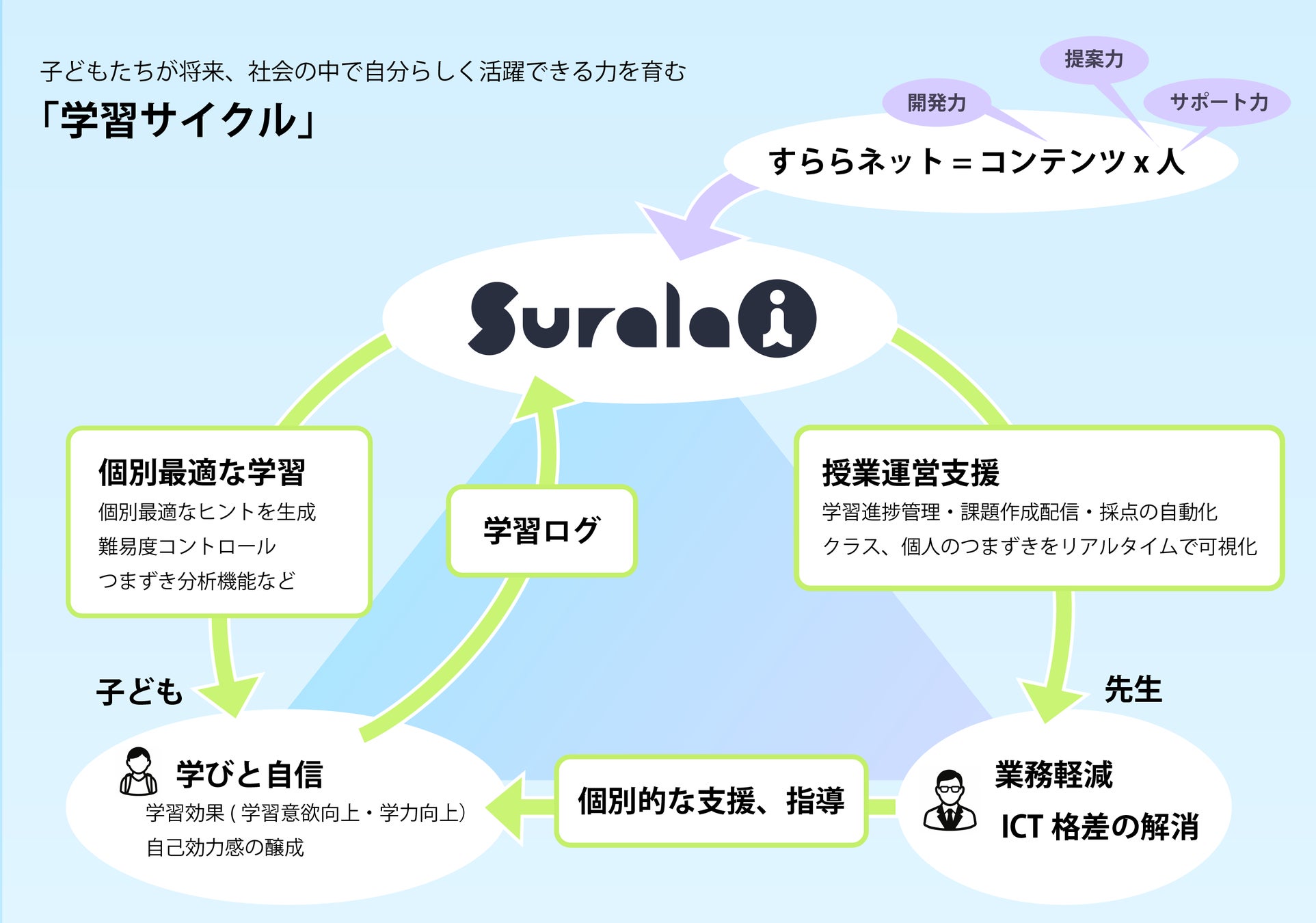 「Surala-i」が目指すのは、単なるデジタル教材ではなく、子どもが学びに夢中になり、先生が安心して寄り添える“新しい学習体験”の創造です。子どもたちにとっては“わかりやすく、続けたくなる”、先生にとっては“教えやすく、把握しやすい”。そんな双方向の「使いやすさ」を追求することで、学びの質そのものを進化させていきます。
