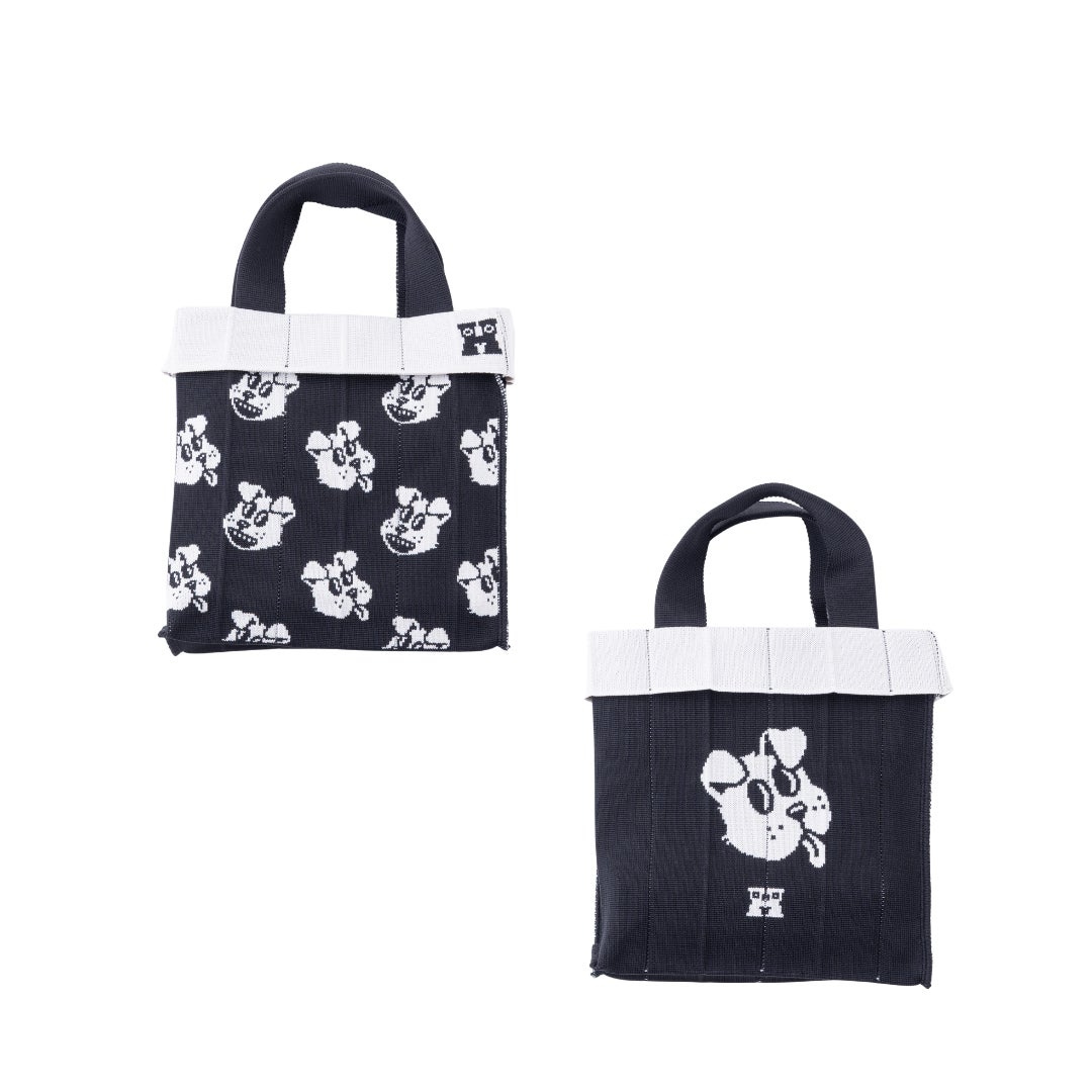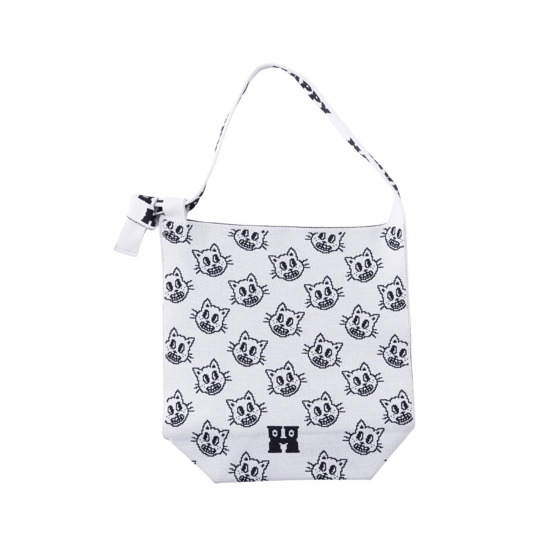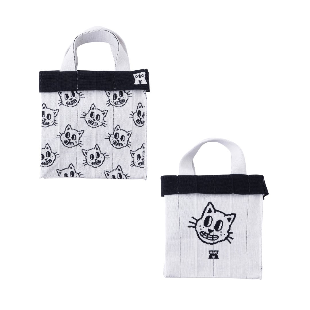 大容量で頼れるFourtyも同じくDogとCatの2柄展開。他のシリーズとは異なる凹凸のある豊かな編み地が特徴で、靴下で人気のキャラクター総柄がより立体的に、表情豊かに再現されています。マチ付きで自立するタフな設計に、ストラップ部分の「HAPPY」ロゴが効いており、肩掛けした際にもキャッチーな印象を与えてくれます。