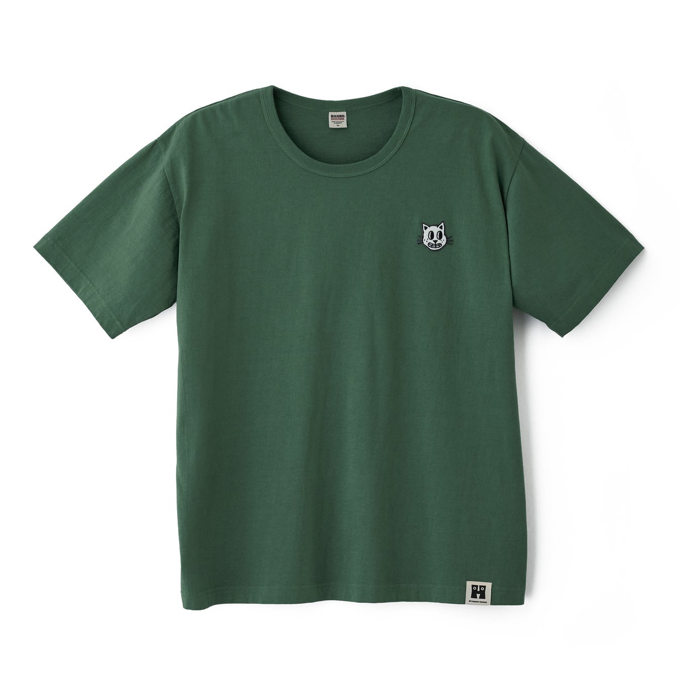 T-shirtは、左胸にDogやCatの豊かな表情を精密な刺繍ワッペンで表現。DogとCatの2デザインに、White、Sumikuro、Blue、Greenの4色を展開。シンプルながらも刺繍の質感が存在感を放ち、伸びに強いバインダーネックを採用したタフなボディは、長く愛用できる「究極のヴィンテージ・ジャパンメイド」を体現しています。