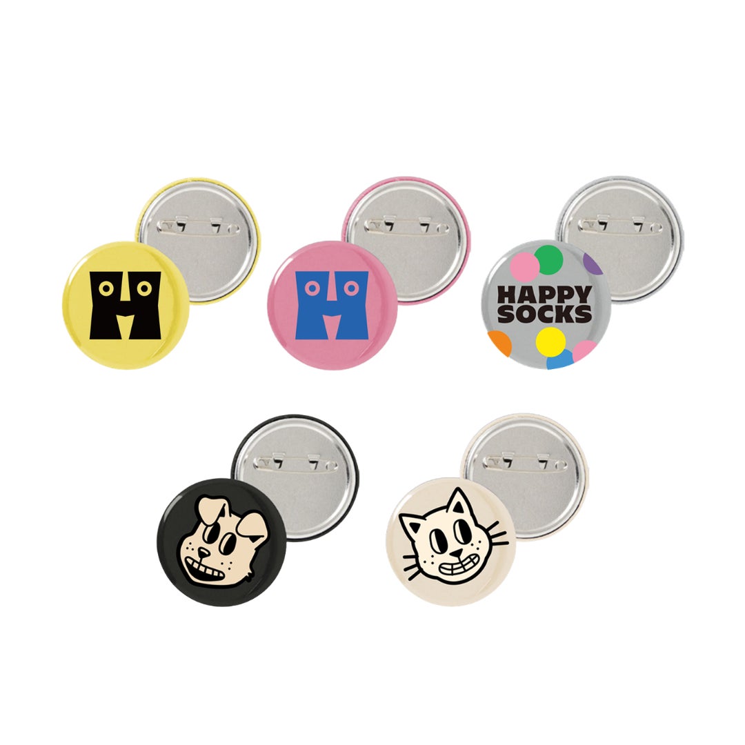 さらに、発売を記念してHappy Socks ルミネエスト新宿店では、本コレクションアイテムを1点ご購入につき、全5種から選べる「Happy Socks オリジナル缶バッジ」を1つプレゼントするノベルティキャンペーンを実施します。※数量限定、なくなり次第終了