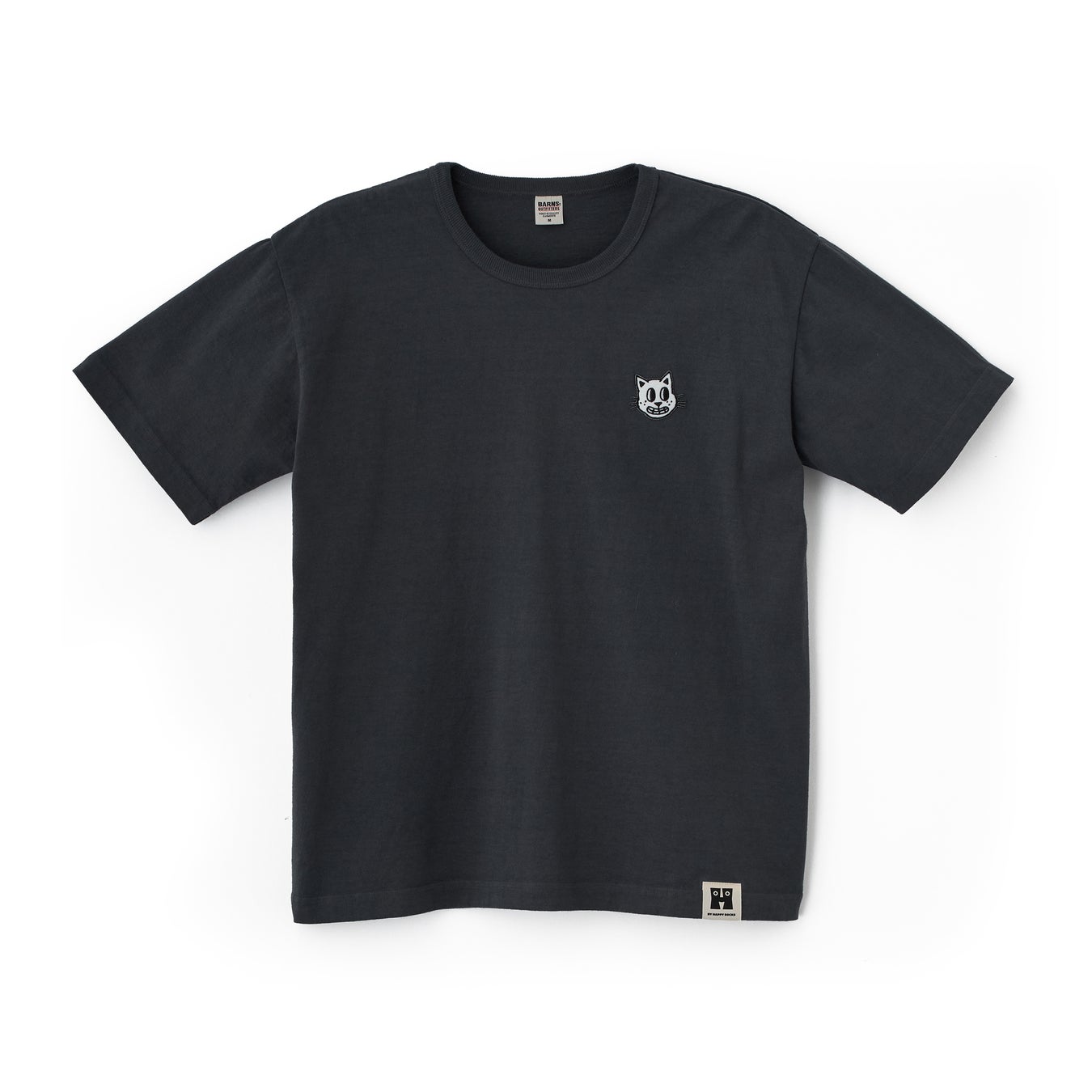 ネック部分に、ボディ生地を挟み込んで縫製する「バインダーネック」を採用。繰り返しの着脱による伸びや負荷に強く、長く愛用いただけるような仕様となっています。左胸にはDogやCatの愛らしい表情を精密な刺繍ワッペンで表現。シンプルながらも存在感のあるデザインは、1枚での着用はもちろんインナーとしても活躍します。裾のHロゴタグがアクセントを添える、タフさと可愛さを兼ね備えたアイテムです。