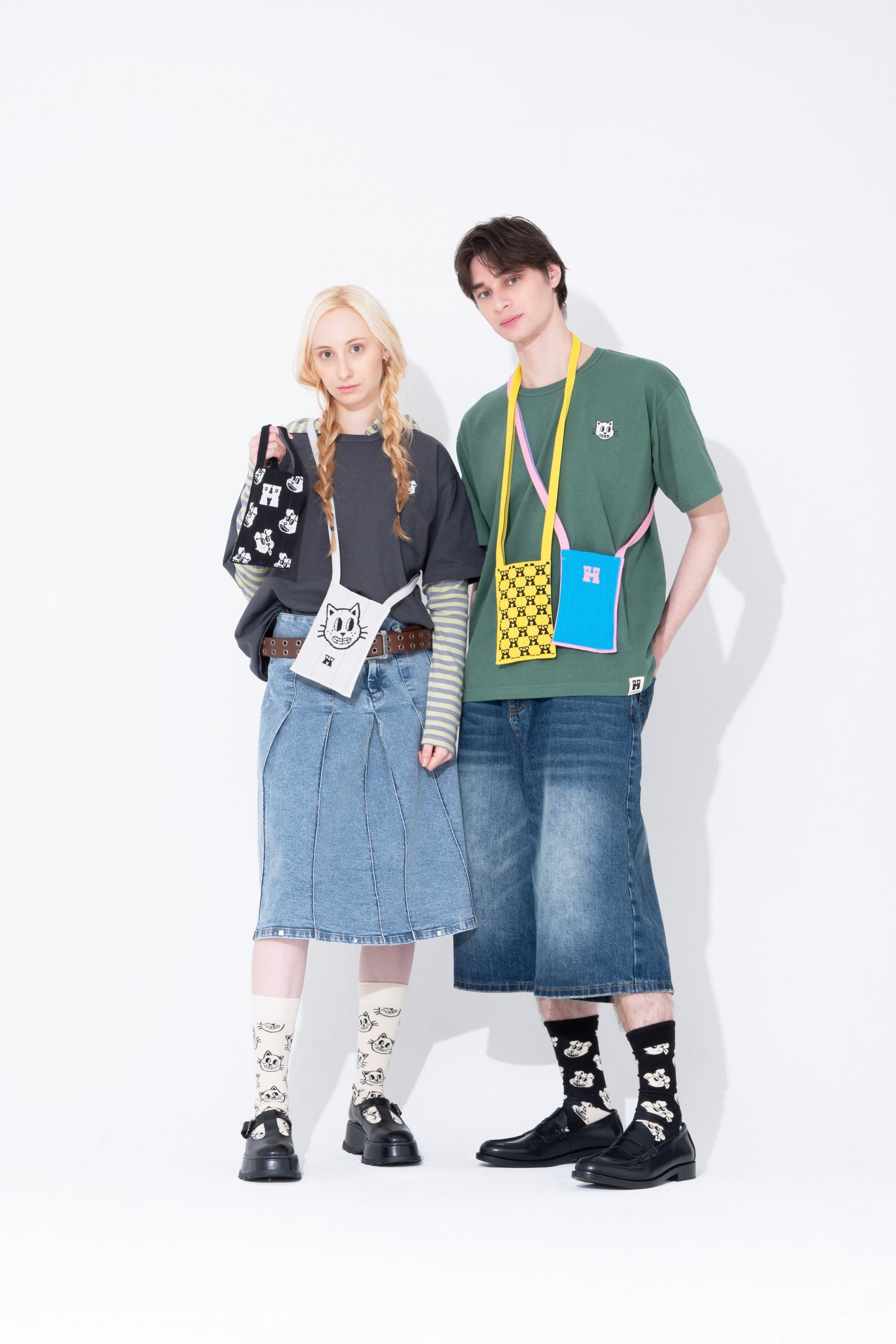 スマートフォンやミニ財布が入るコンパクトなサイズが便利なMe-Knittyは、表裏で異なる表情を楽しめる遊び心たっぷりのデザイン。片面には愛くるしいDogやCatの総柄を、もう片面には思わず目が合うような愛嬌たっぷりのビッグワンポイントを配しました。Happy Socksを象徴するHロゴを全面に配したキャッチーなデザインも登場し、Dog、Cat、H Yellow×Black、H Pink×Blueの4柄展開で、その日の気分やスタイリングに合わせて表情を変えられる楽しさを詰め込みました。