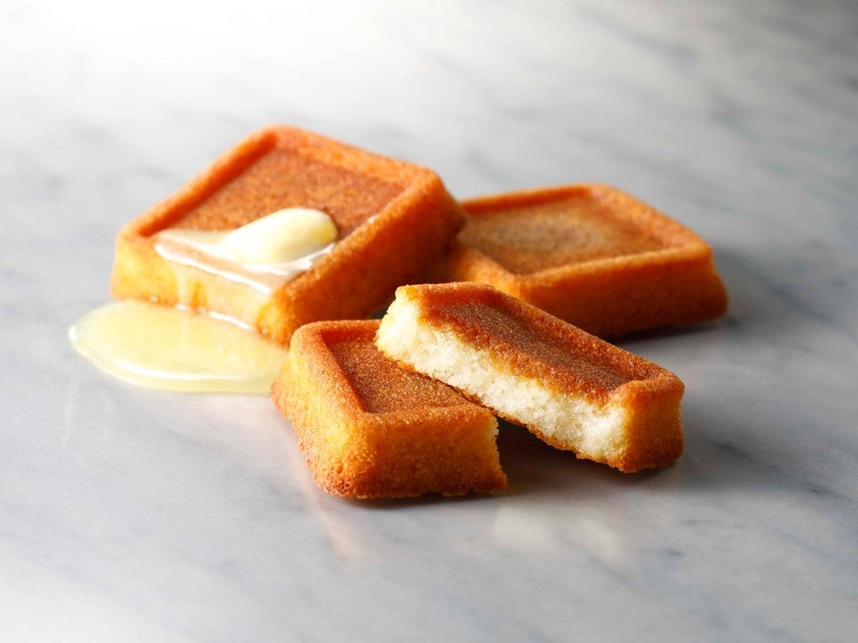 ヨーロッパ産発酵バターとフランス産ゲランド塩を使ったバターフィナンシェ。表はカリッと焼き上げ、中はメープルシロップを染み込ませ、しっとり仕上げています。