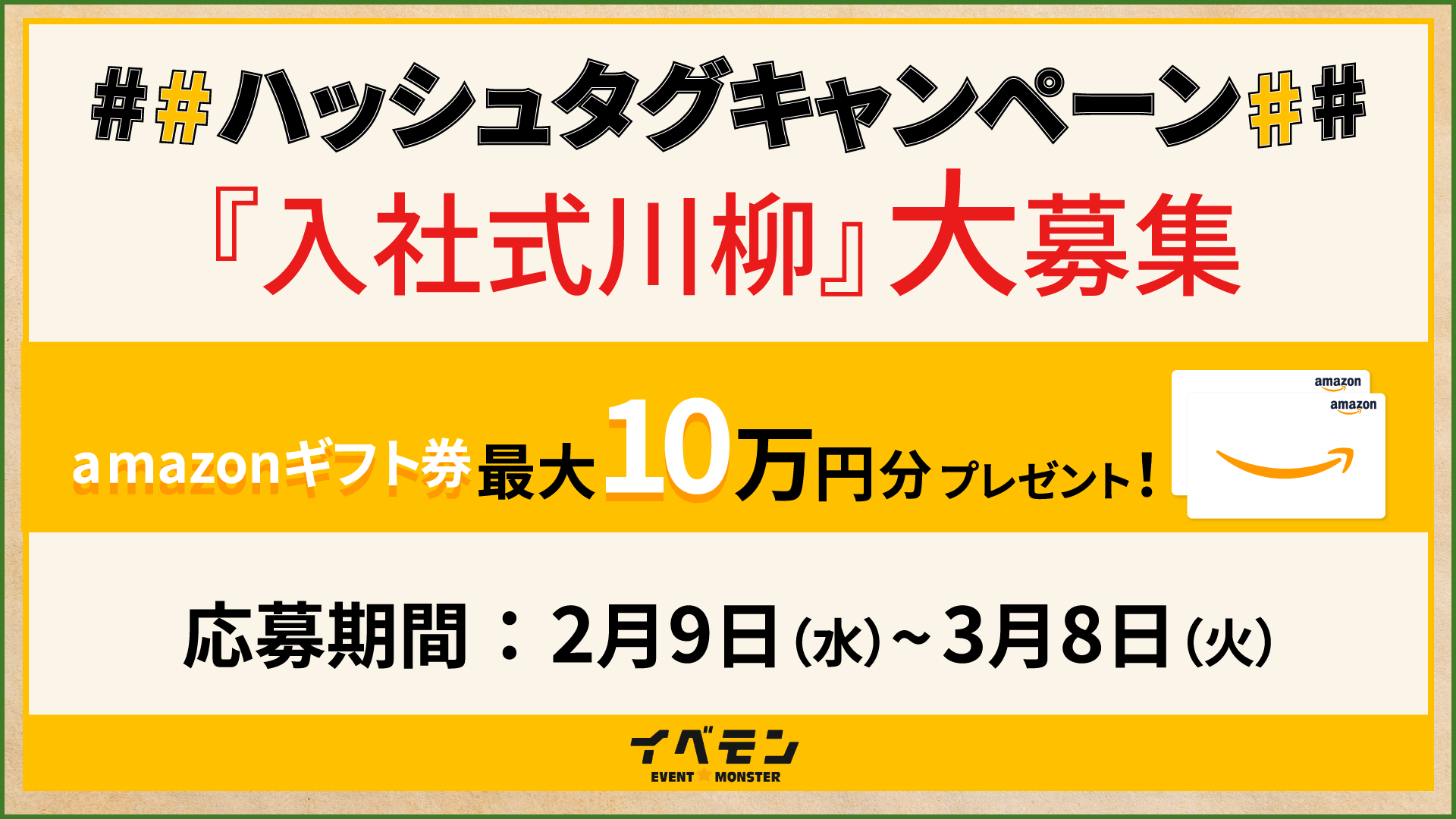 「#入社式川柳」「#イベモン」をつけて、入社式川柳を投稿。