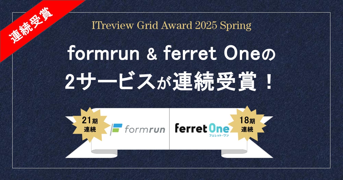 「ITreview Grid Award 2025 Spring」にてformrun & ferret Oneの2サービスが同時受賞!