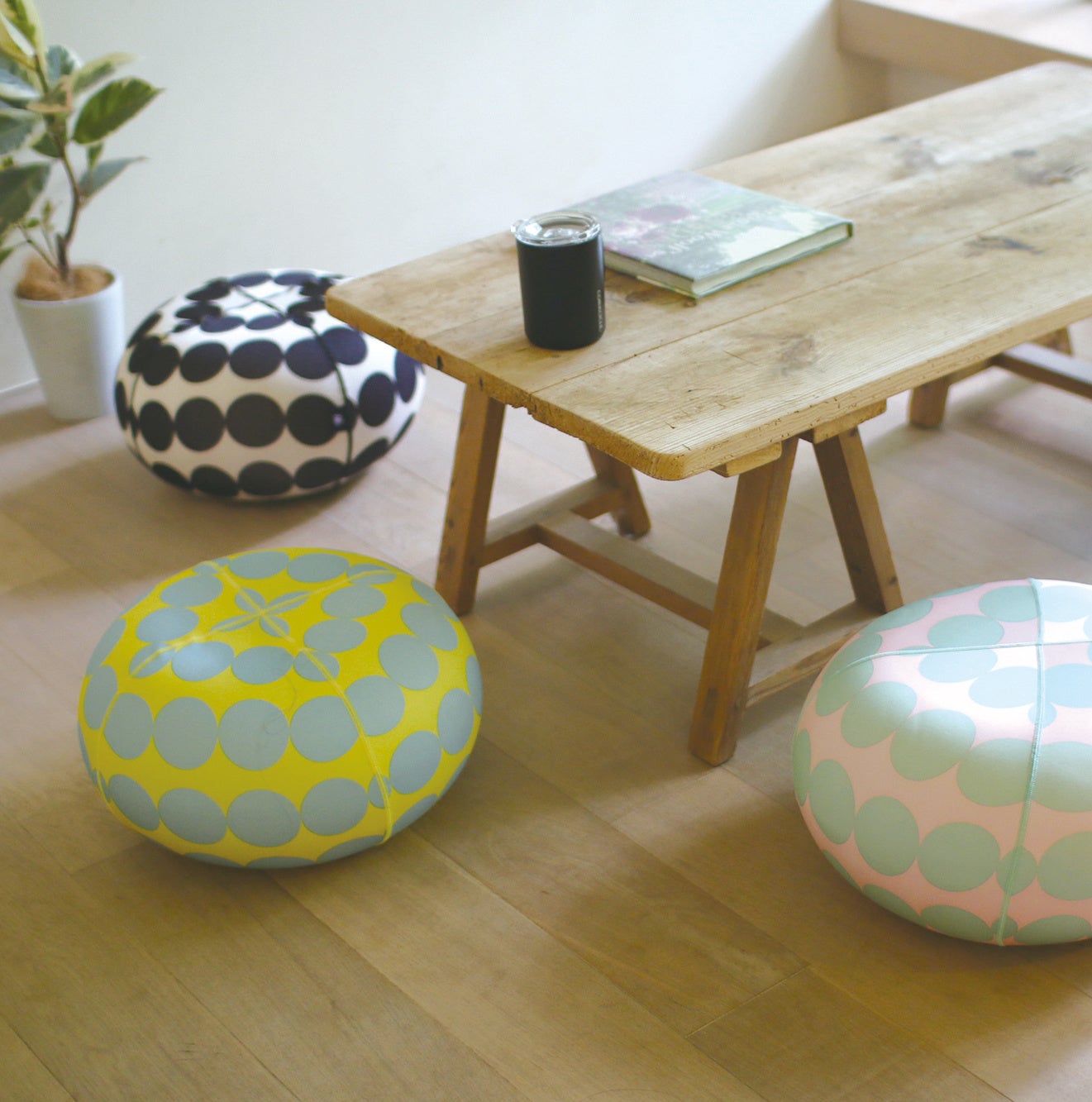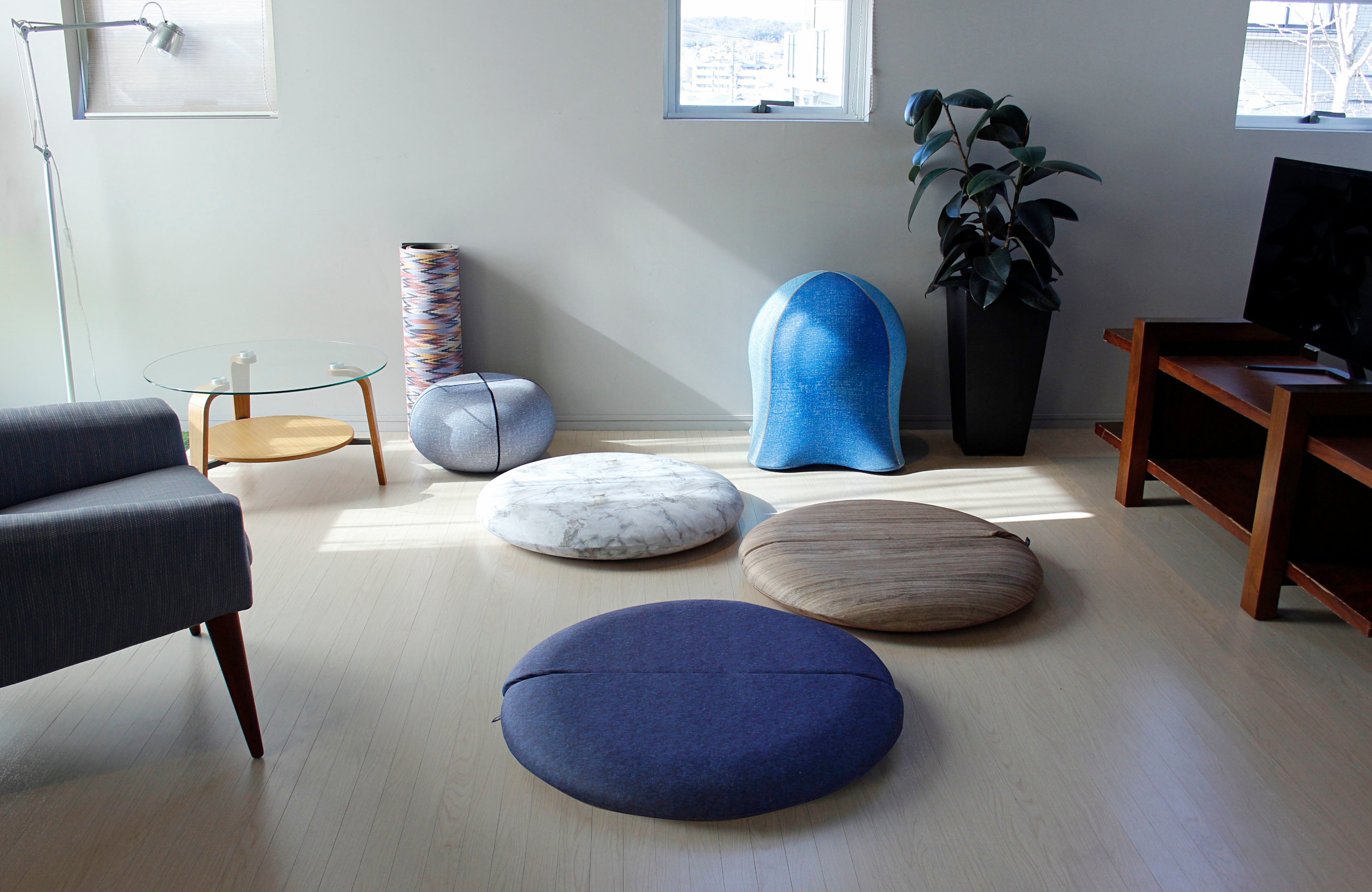 ドーナツ型バランスボール内蔵のコロンとしたフォルムがかわいいスツール。
