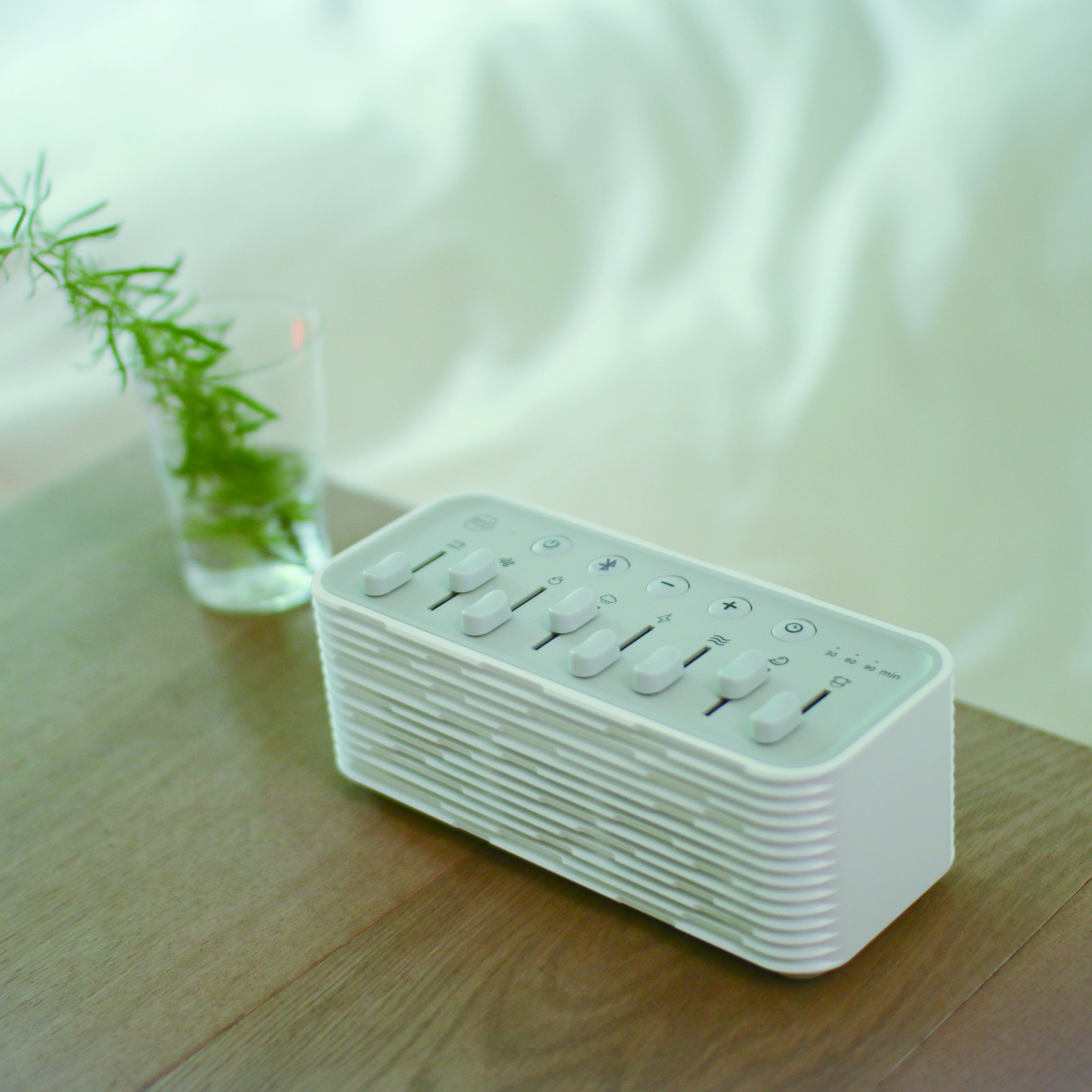 良質な睡眠空間をサポートする癒しの環境音8種類が音量調節できるBluetoothスピーカー。