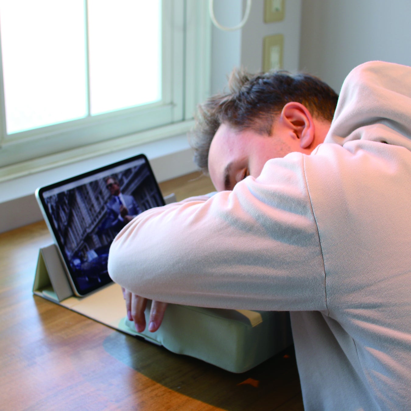 本のように立てておける、お昼寝用まくら。モバイルスタンドとしても。