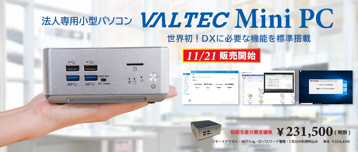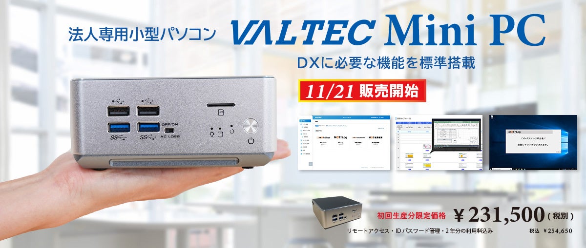 DXに必要な機能を標準搭載したVALTEC Mini PCを11/21より販売開始。安全、快適、効率的な働き方を実現。