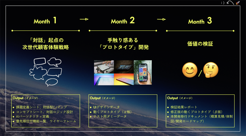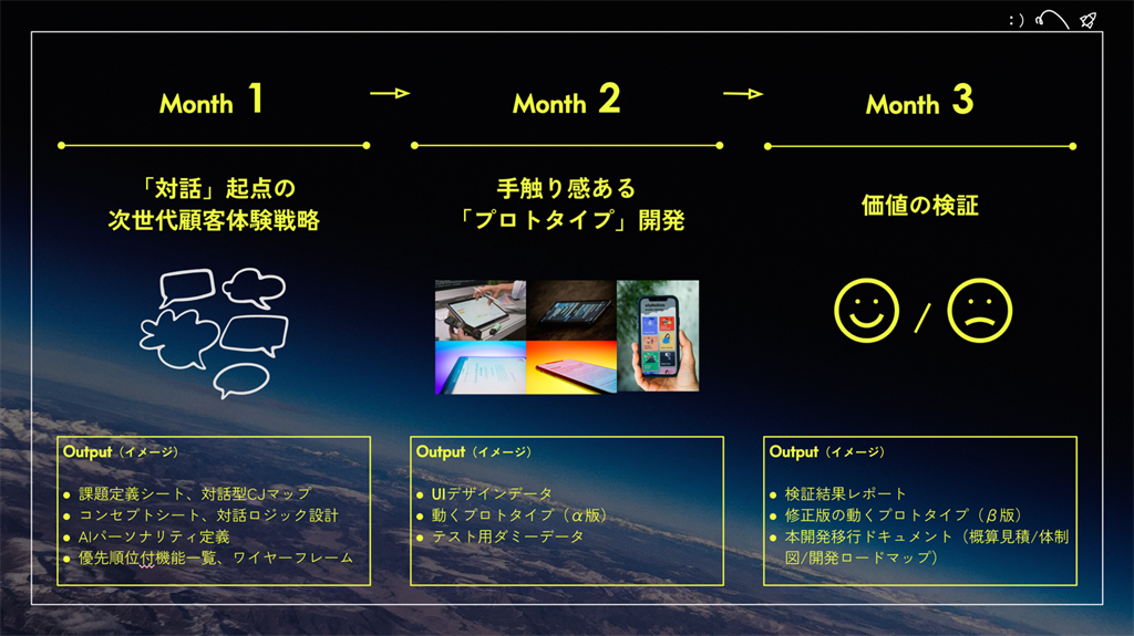 「かんがえる:戦略構想」と「つくる:プロトタイプ開発」を3ヶ月で実装する。