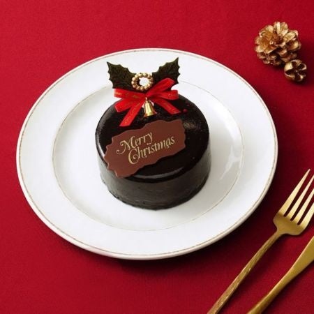 濃厚なガトーショコラ生地にショコラムースを使ったザッハトルテです。アクセントとしてダークチェリーフィリングとチョコクランチがサンドされています。シンプルながらも洗練されたデザイン。大人が十分に満足できるクリスマスケーキです。