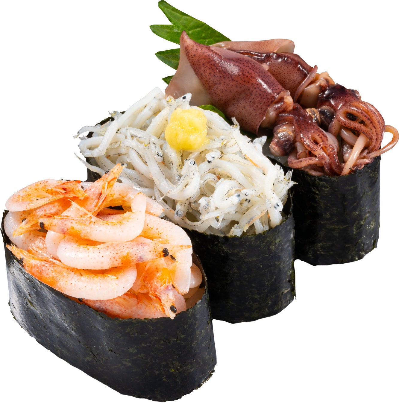 春を感じる柚子塩活〆真鯛・サーモン・天然さよりが一皿にのった「春の華やか三昧」、春の旬食材である釜揚げ桜えび・釜揚げしらす・釜揚げほたるいかを軍艦で味わう「春の旨ネタ三昧」、3種類のサーモン寿司を一度に楽しめるサーモン好きにはたまらない「サーモン三昧」をお値打ち価格、各一皿三貫187円(税込)でご用意しました。