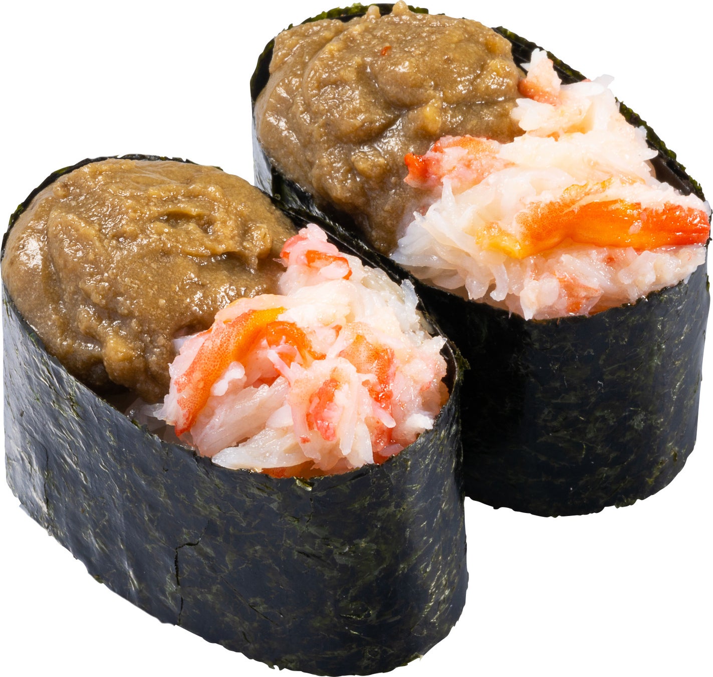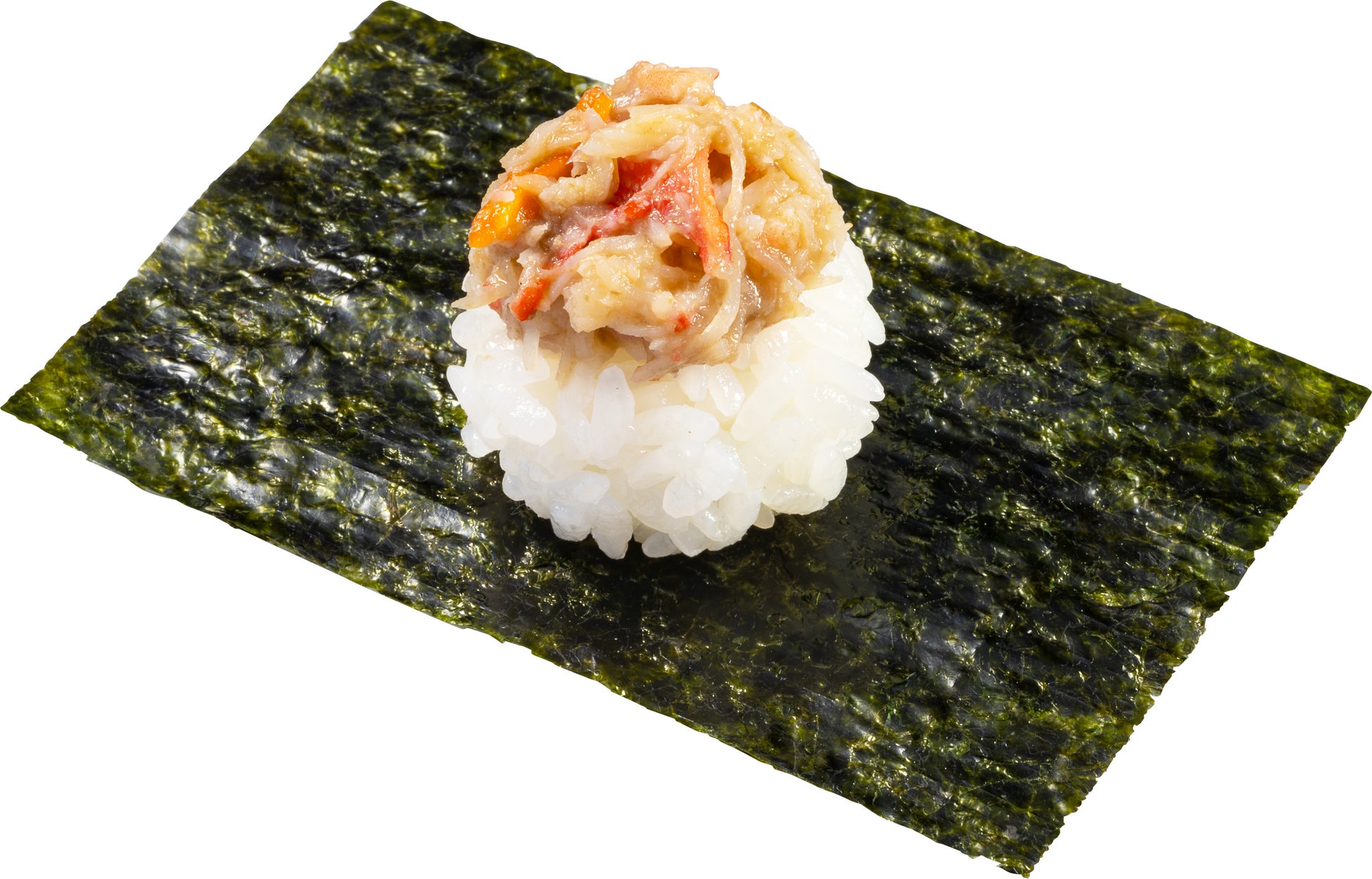 ずわい蟹のほぐし身と濃厚な紅ずわい蟹のかにみそを合盛りの軍艦に仕立てました。
