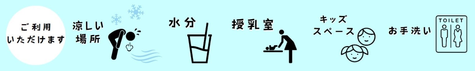 例年、多くの方が熱中症を発症しています。熱中症は屋内での発症も多く、家の中にいる時にも注意が必要です。当社は、地域の皆さまと暑い夏を乗り越えていくため「おおさかクールオアシスプロジェクト」に賛同します。このプロジェクトは、猛暑から府民の命を守るとともに健康被害の軽減を図ることを目的に、猛暑の際における外出先の一時避難所として、暑さをしのげる涼しい空間(クールオアシス)を、事業者等の協力のもと、府民等に対して提供する取組みです。当社の店舗で休んでいただける場所や水分・授乳室・キッズルーム・お手洗いなどをご利用いただき、地域の方のお役に立ちたく実施いたします。